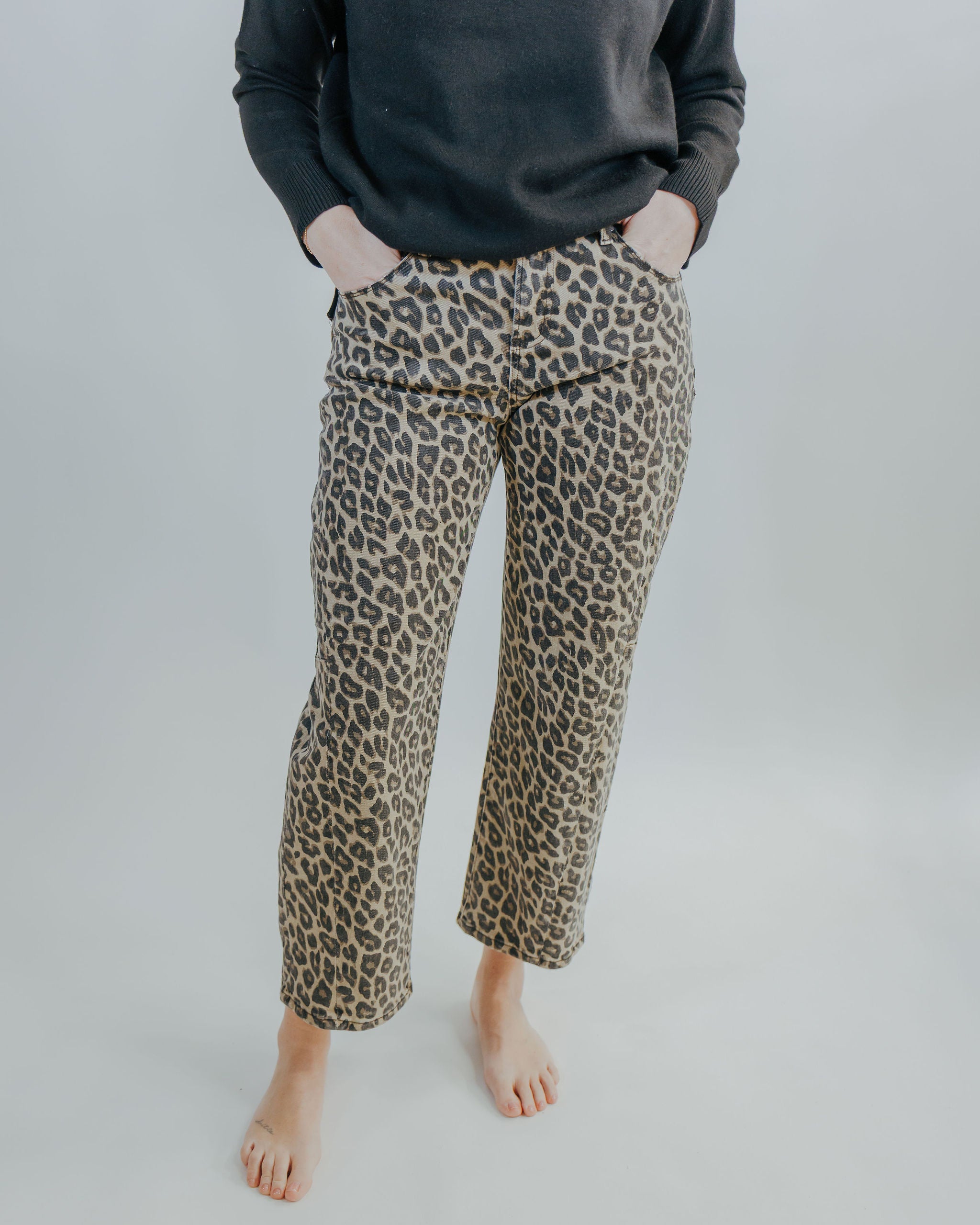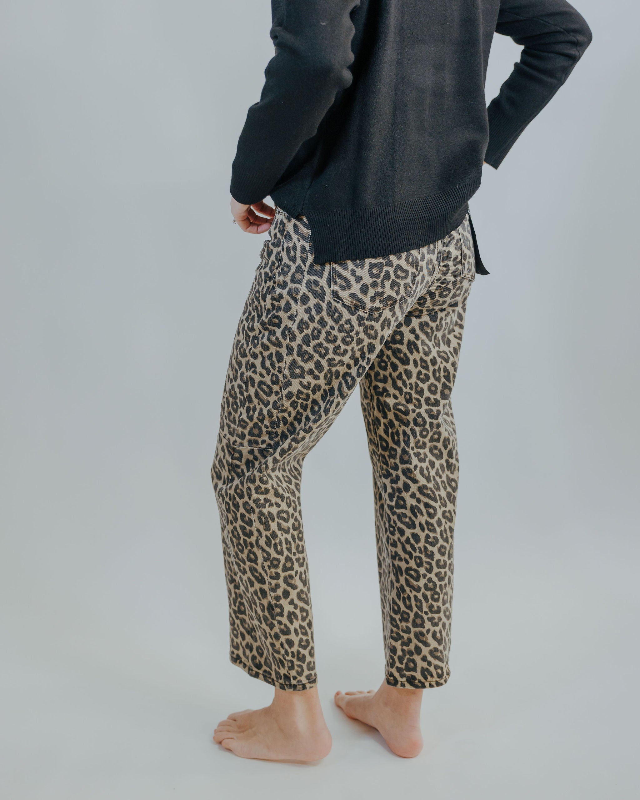 Meet your new go-to pant. The Laura Leopard Barrel features a flattering high-rise cut with a playful leopard print that works with everything in your closet. The barrel leg silhouette hits just right at the ankle, giving you that effortlessly chic vibe. Pair it with a crisp white tee, oversized blazer, or cozy sweater—this print-forward style is ready for whatever you throw at it.