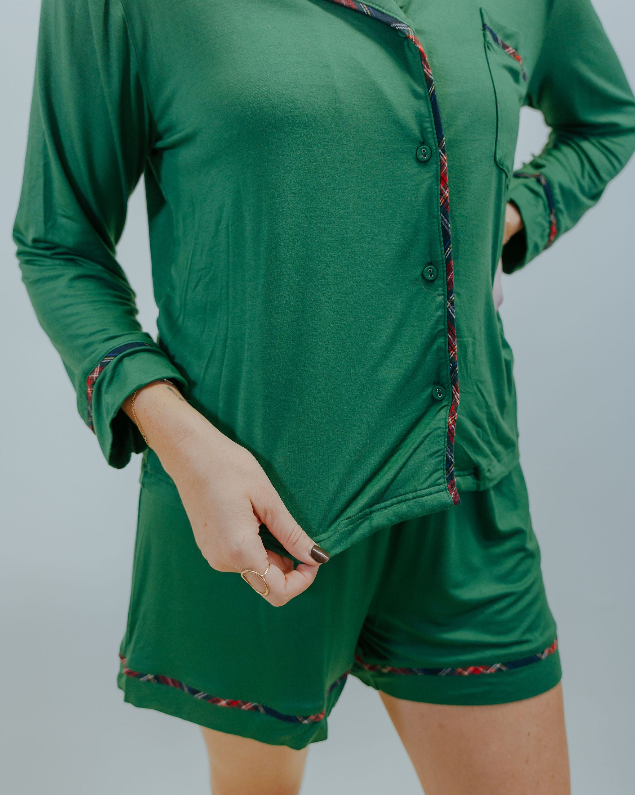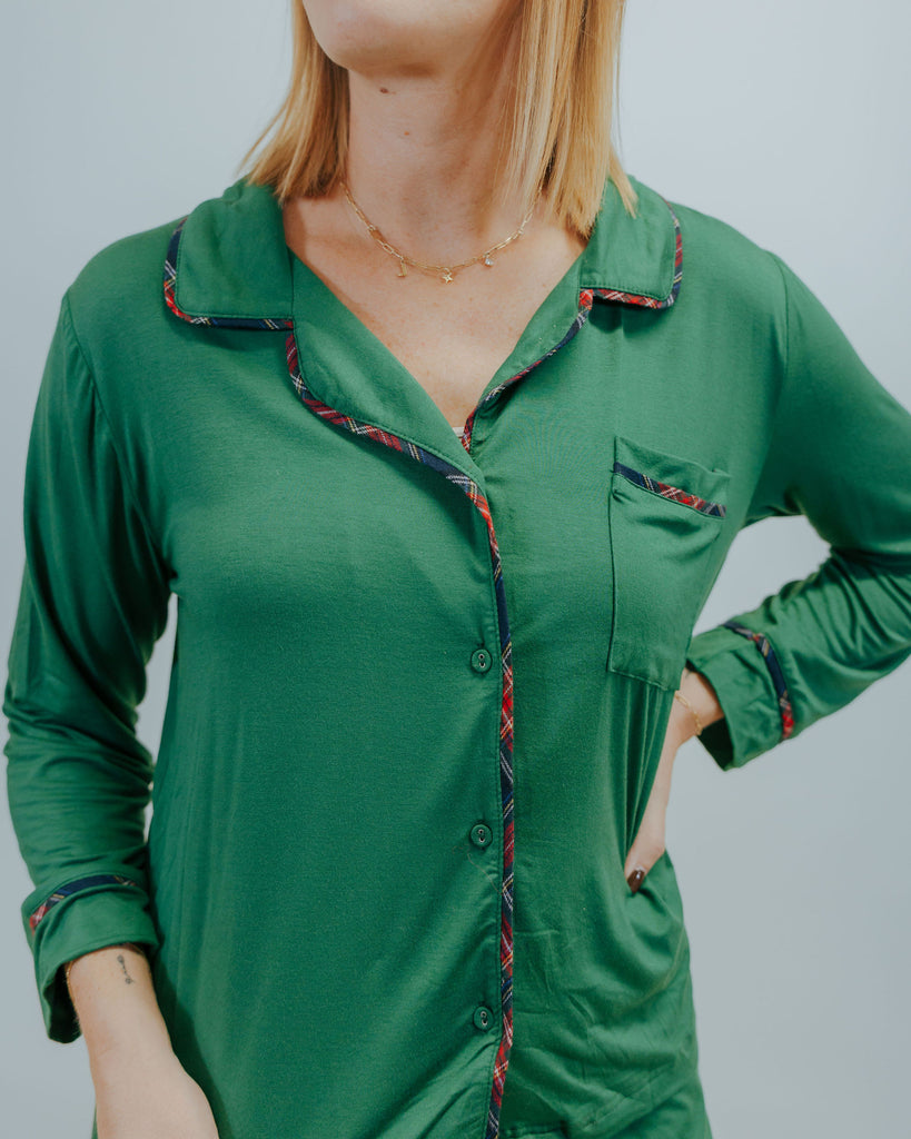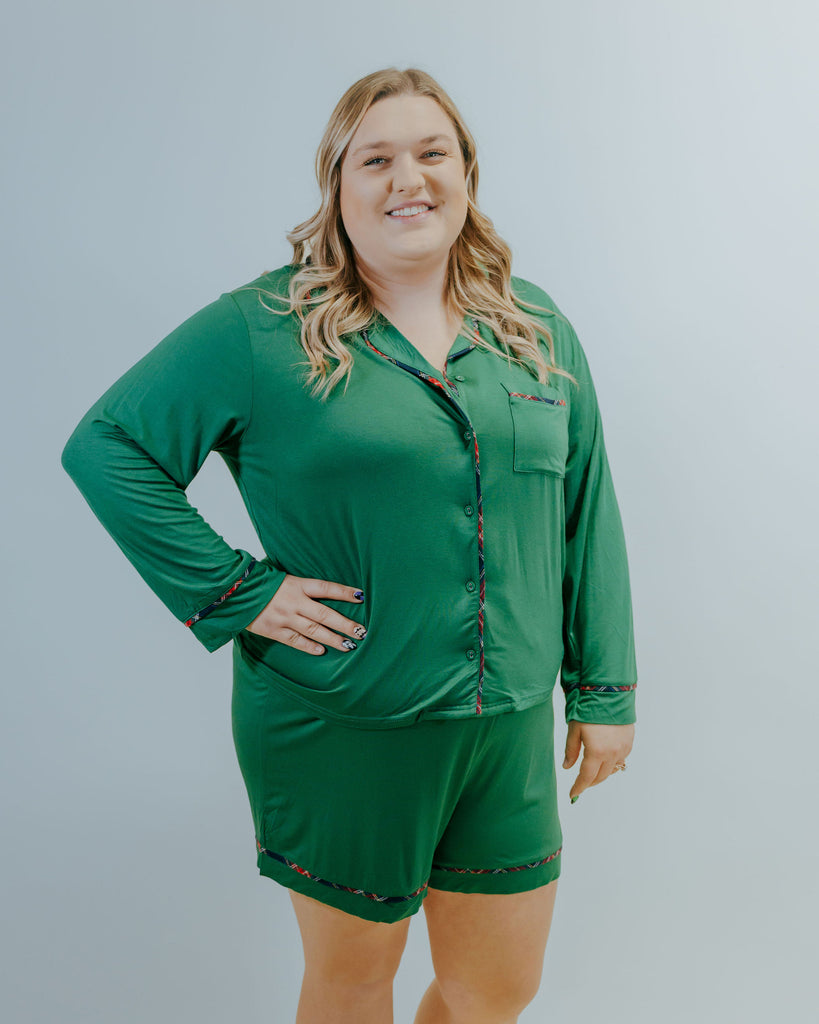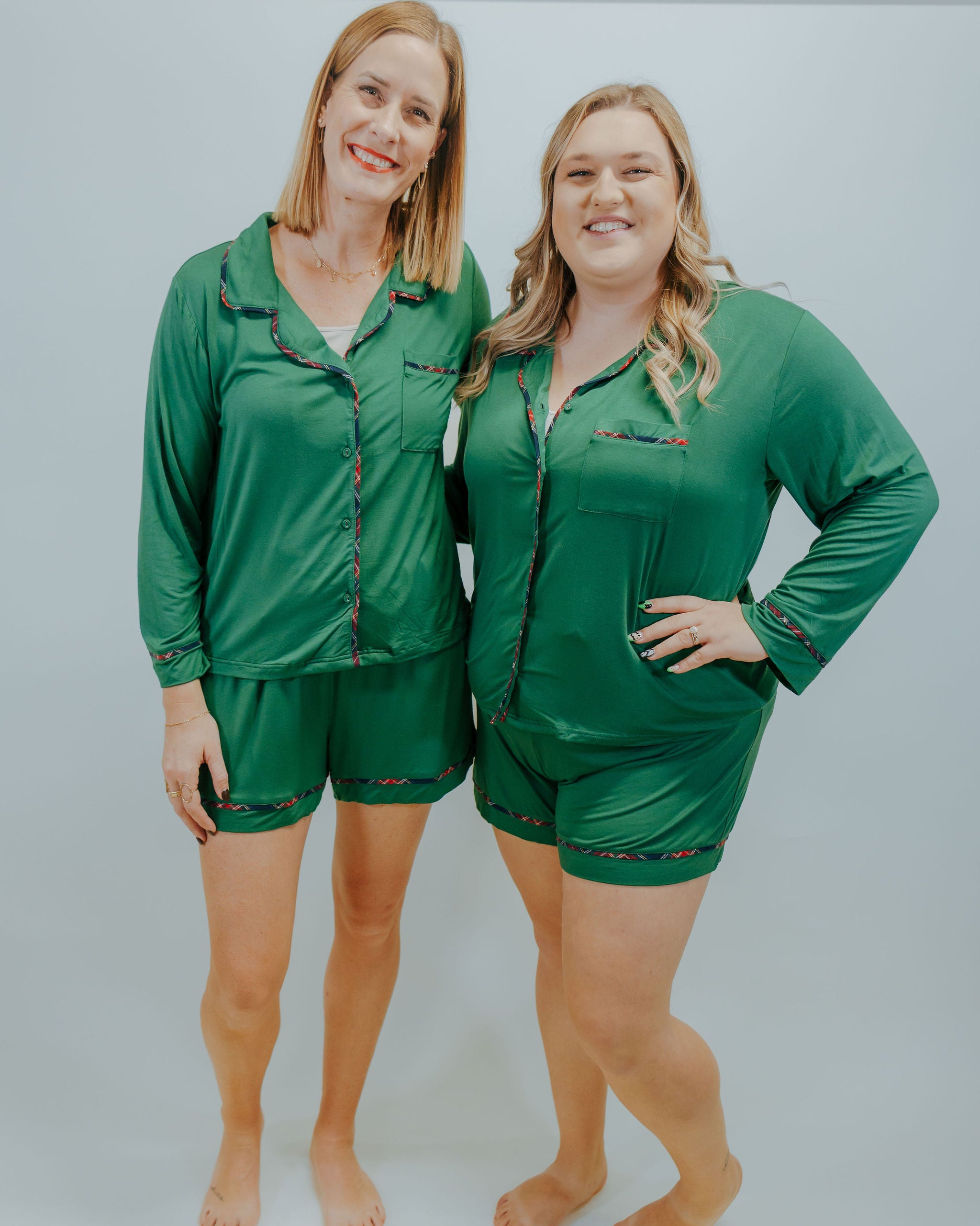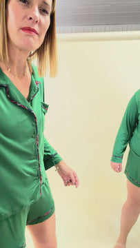 Snuggle up in this adorable green pajama set, detailed with charming red patterned stitching for a festive twist. Super cozy and soft, it’s perfect for lazy mornings or cozy evenings, making bedtime feel like a warm hug.
