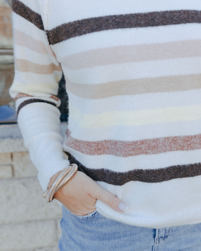 Wrap yourself in cozy charm with the Pave the Way Sweater. Its adorable striped pattern adds a playful touch to your look, while the irresistibly soft fabric makes staying warm feel like a treat. Perfect for layering or wearing on its own, this sweater turns everyday comfort into a stylish adventure.