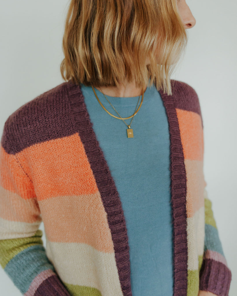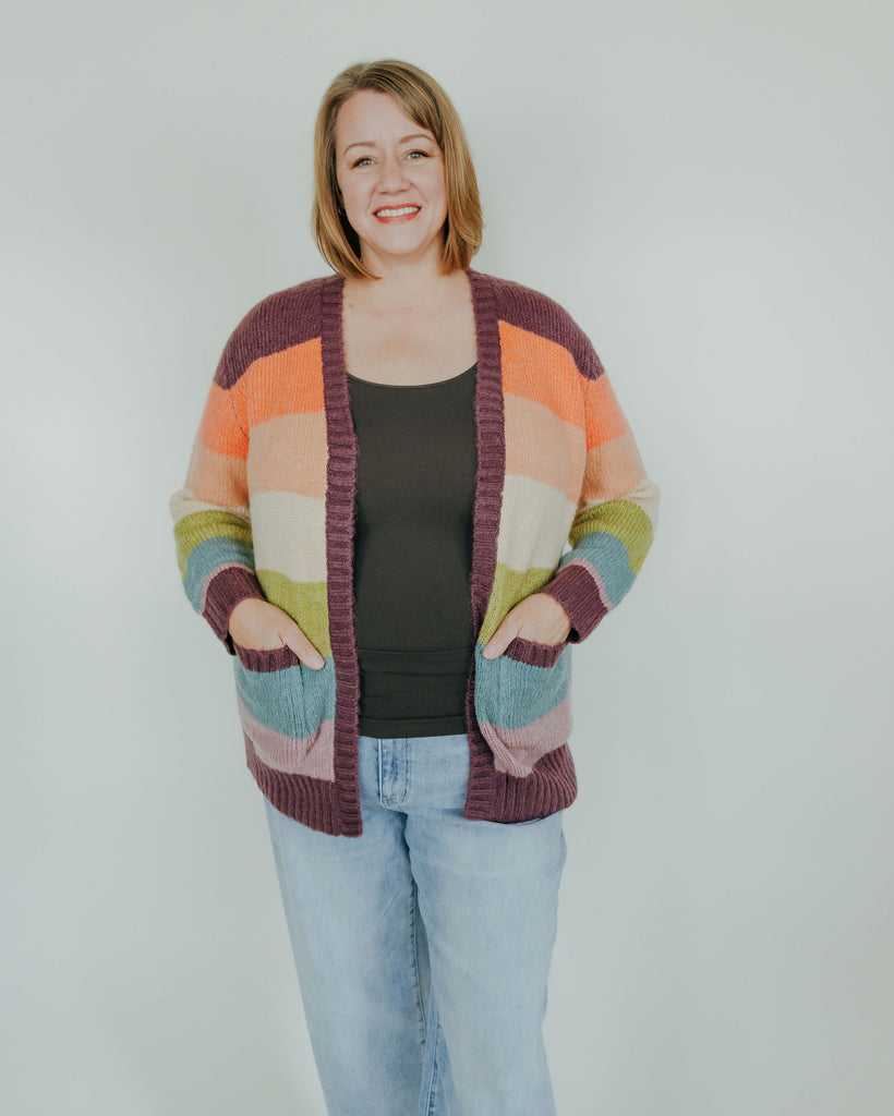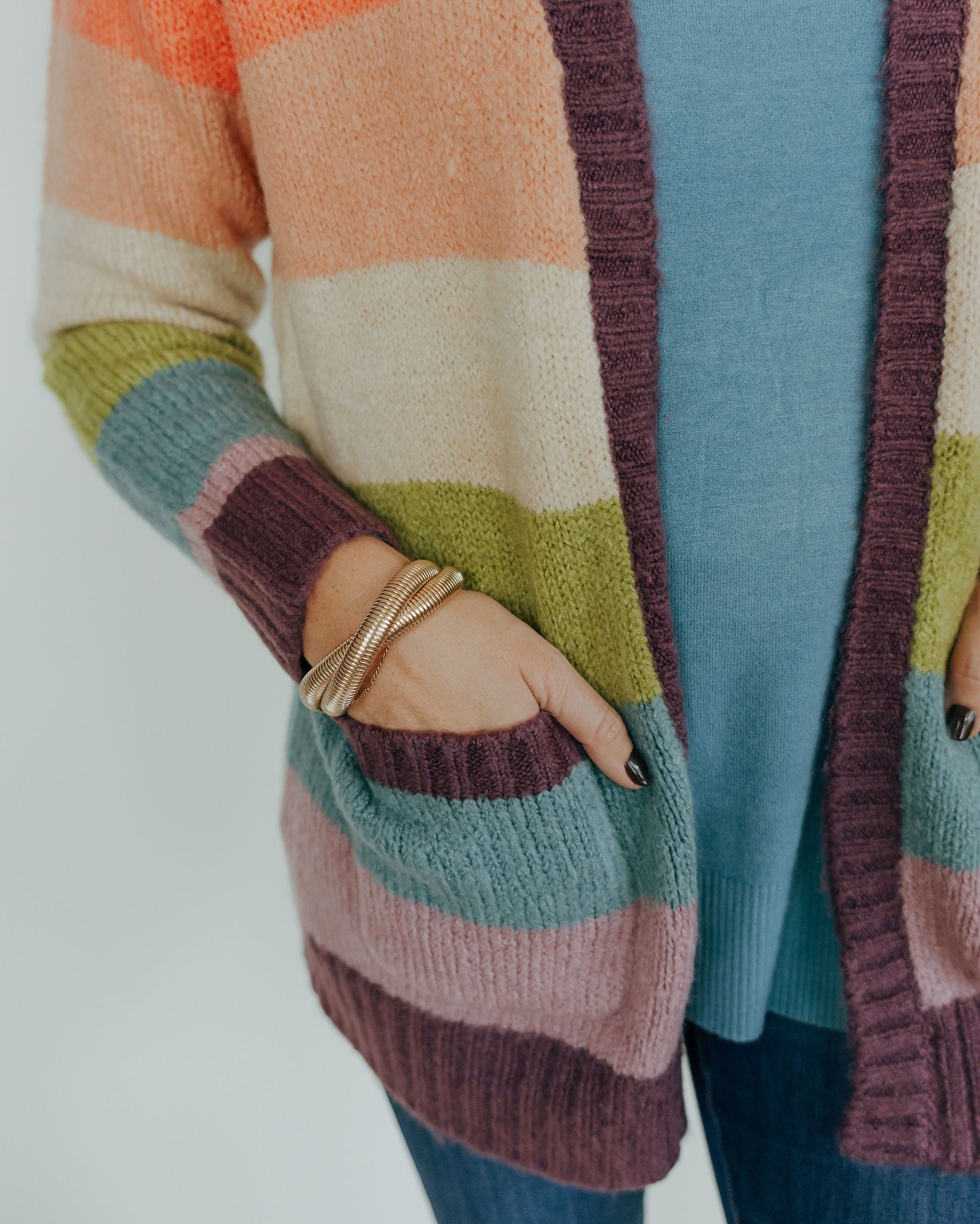 Brighten up your wardrobe with the Next Thing You Know Cardigan! Featuring a playful color block pattern and an easy open front, this cardigan adds a fun pop of color to any outfit. Perfect for layering, it’s a cheerful way to stay cozy while making a stylish statement.