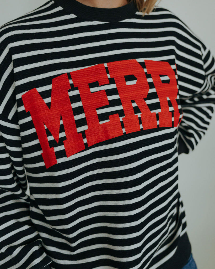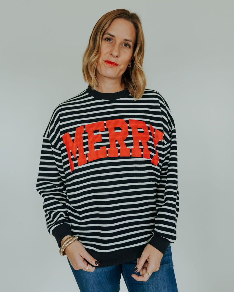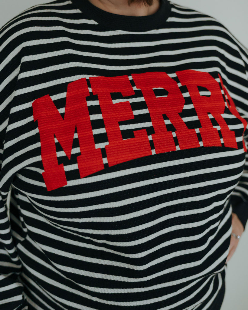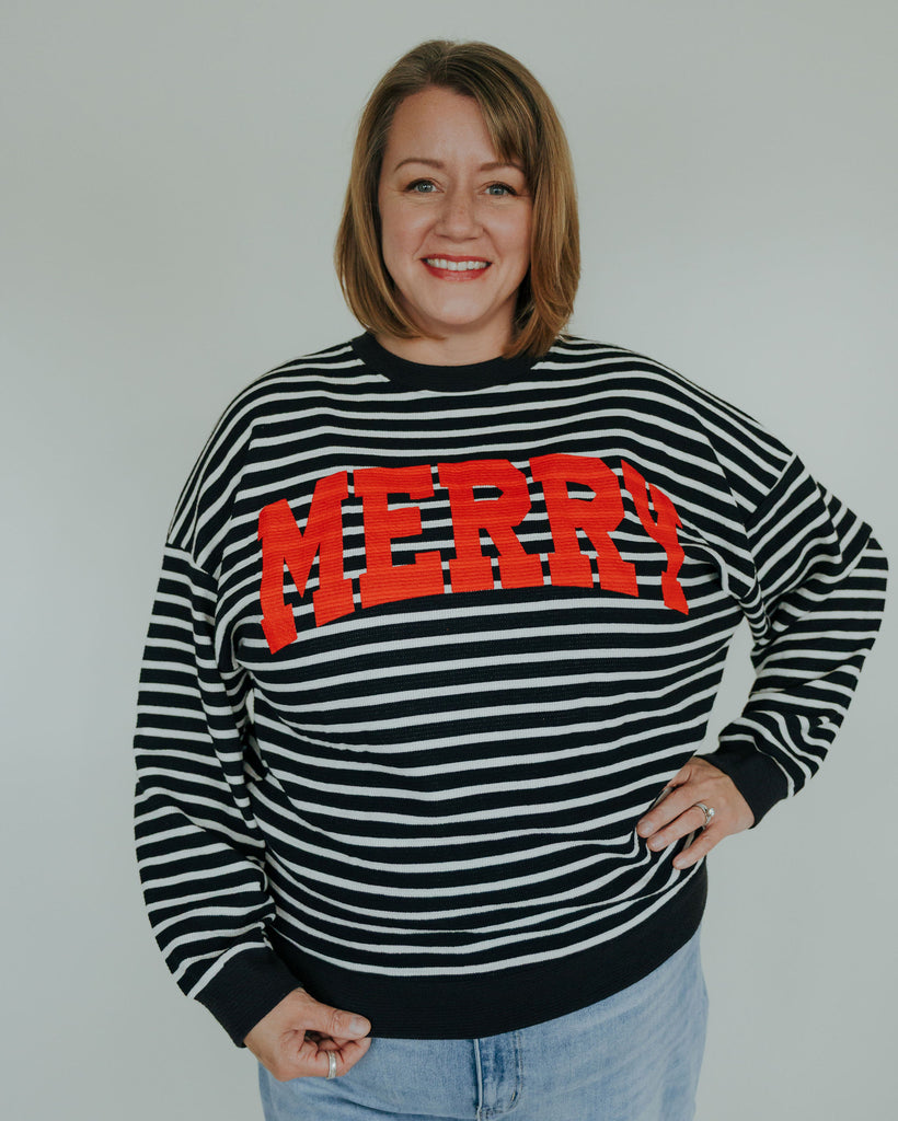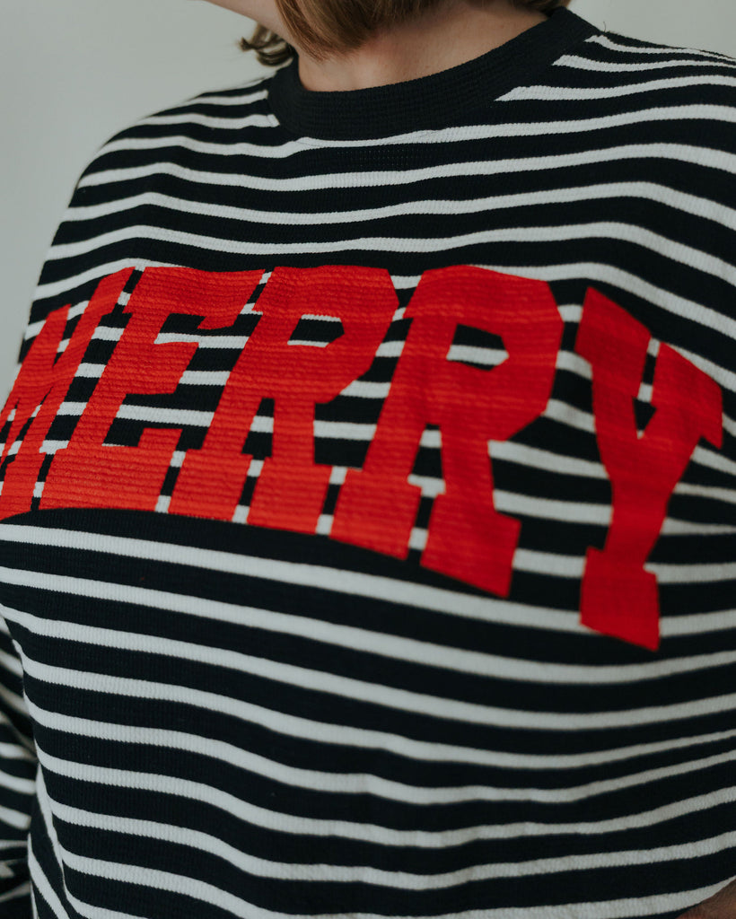 Get holiday-ready with the Merry In Stripes Long Sleeve! This oversized top combines bold stripes with a stretchy, comfy fit that’s perfect for cozy celebrations or lounging in style. Embrace festive fun while feeling relaxed and playful all season long.