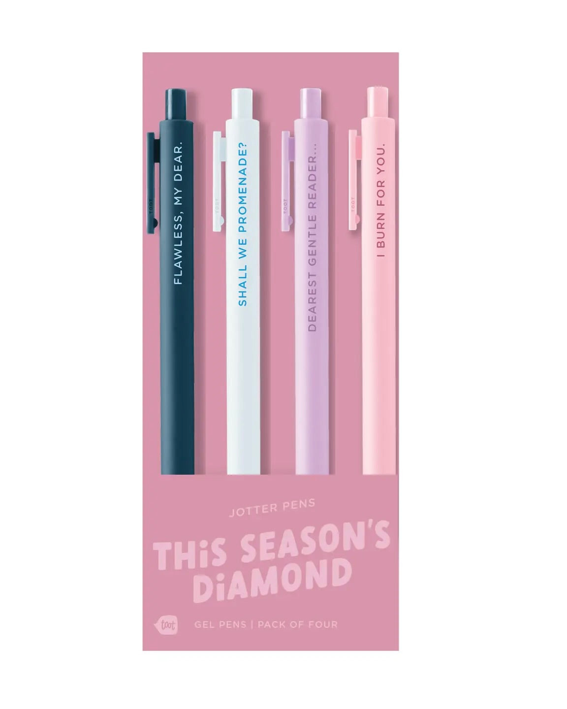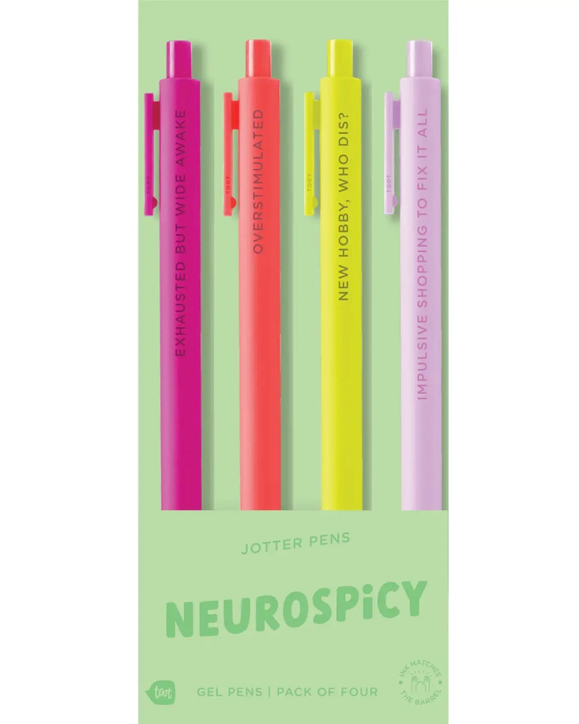 Our 4 packs of Jotter Pen Sets are all themed sets. Super fun sayings and the perfect color mixes. The soft-touch barrel surface and fine-point gel ink that matches the barrel will make these pens your new favorite.