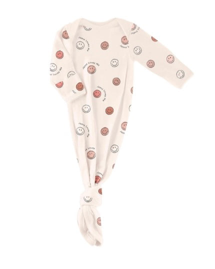 Wrap your little one in love with this sweet Jesus Loves Me gown, sized perfectly for newborns 0-3 months. Featuring an uplifting message that celebrates faith and warmth, it's an ideal gift for baby showers, hospital bags, or welcoming a new arrival. Soft, gentle, and full of heart—this gown makes a meaningful keepsake for families who want to share their values from day one.