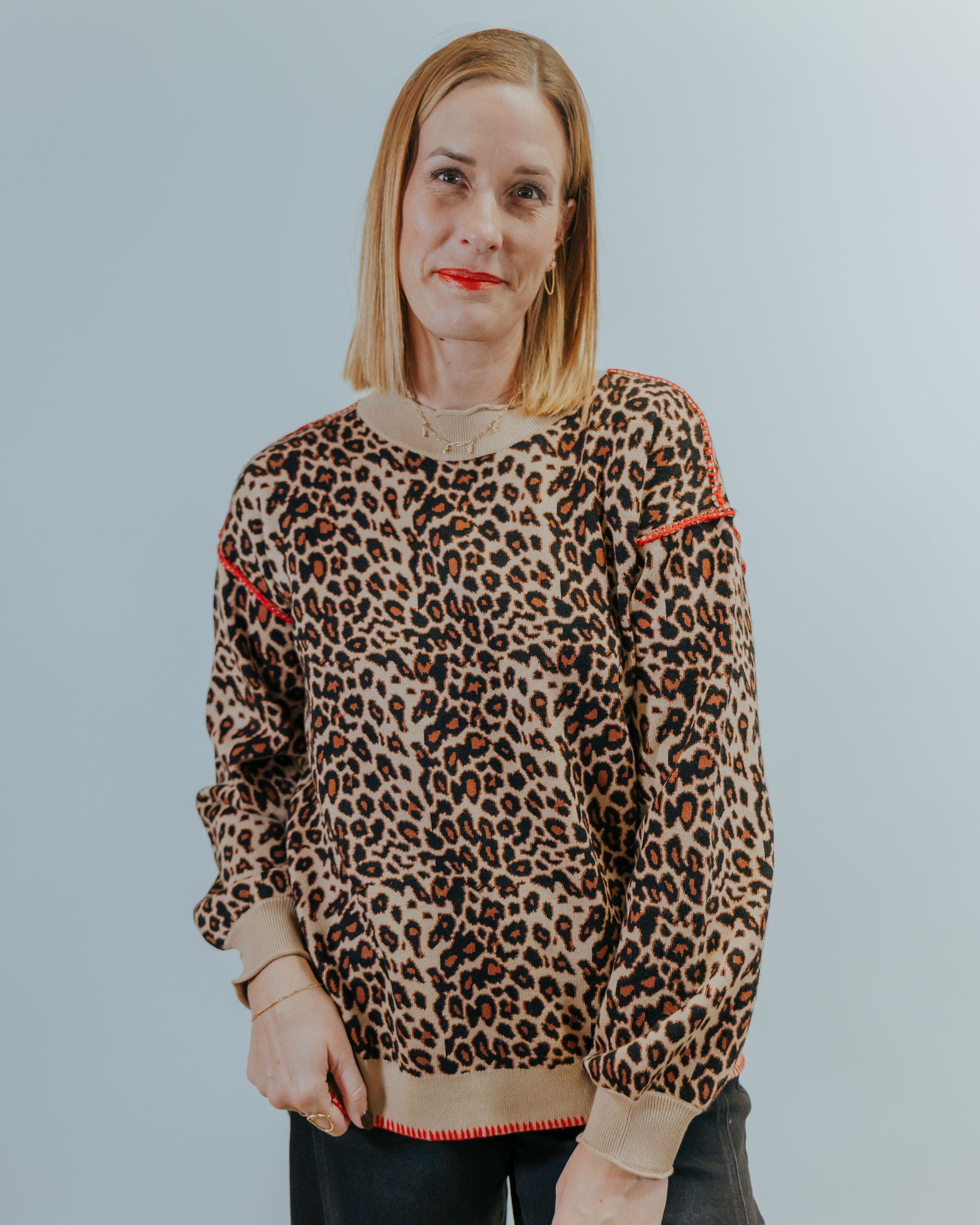 Embrace fun and flair with the Searching For You Sweater. This long-sleeve top features a lovable leopard print that adds a playful touch to your wardrobe. Perfect for cozy days or casual outings, it effortlessly blends comfort with a trendy pattern that’s sure to turn heads. Stay warm while showing off your spirited style!