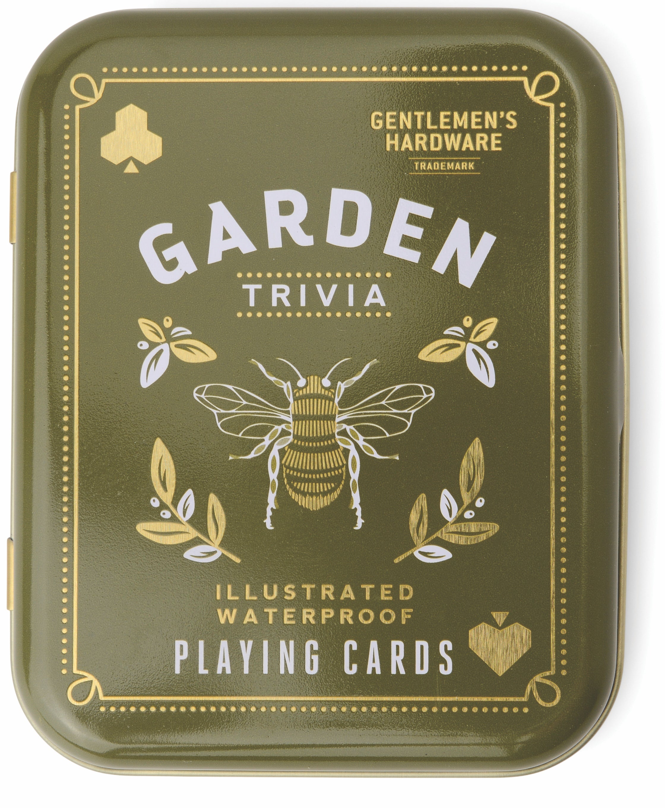 Our stylish Gardener’s Playing Cards include garden-themed illustrations, tips and trivia. Crafted from waterproof material so you can play indoors and out. Packaged in tin.