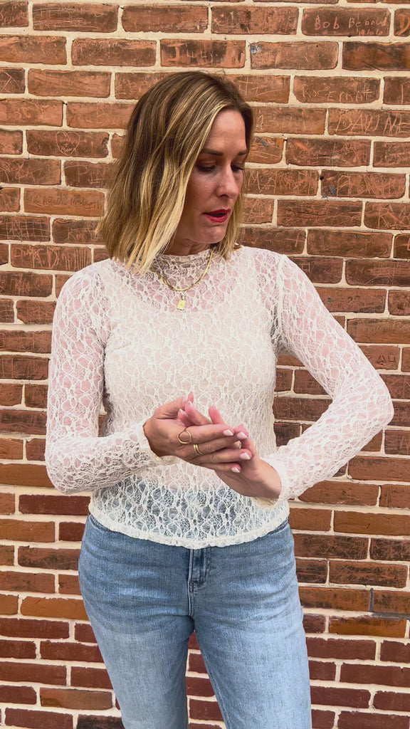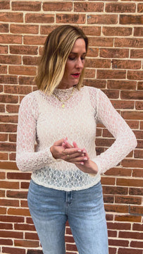 Elevate your look with this lace top. Its delicate lace combined with a chic mock neck creates a playful yet sophisticated vibe. Perfect for layering or wearing solo, this top adds a flirty touch to any outfit while keeping you cozy and stylish all day long.