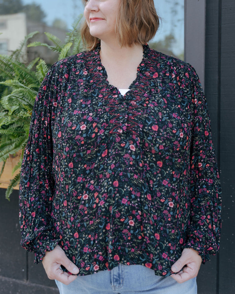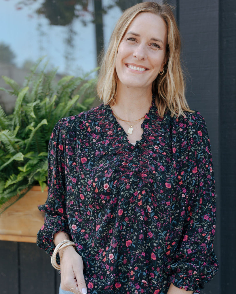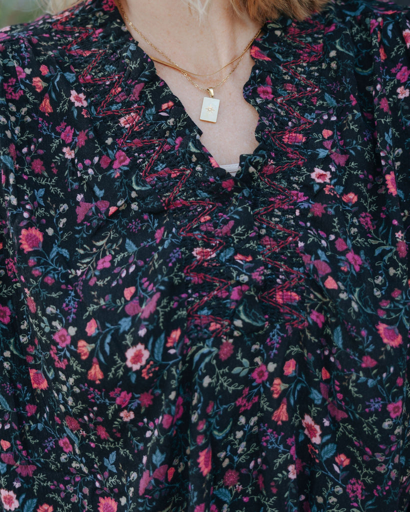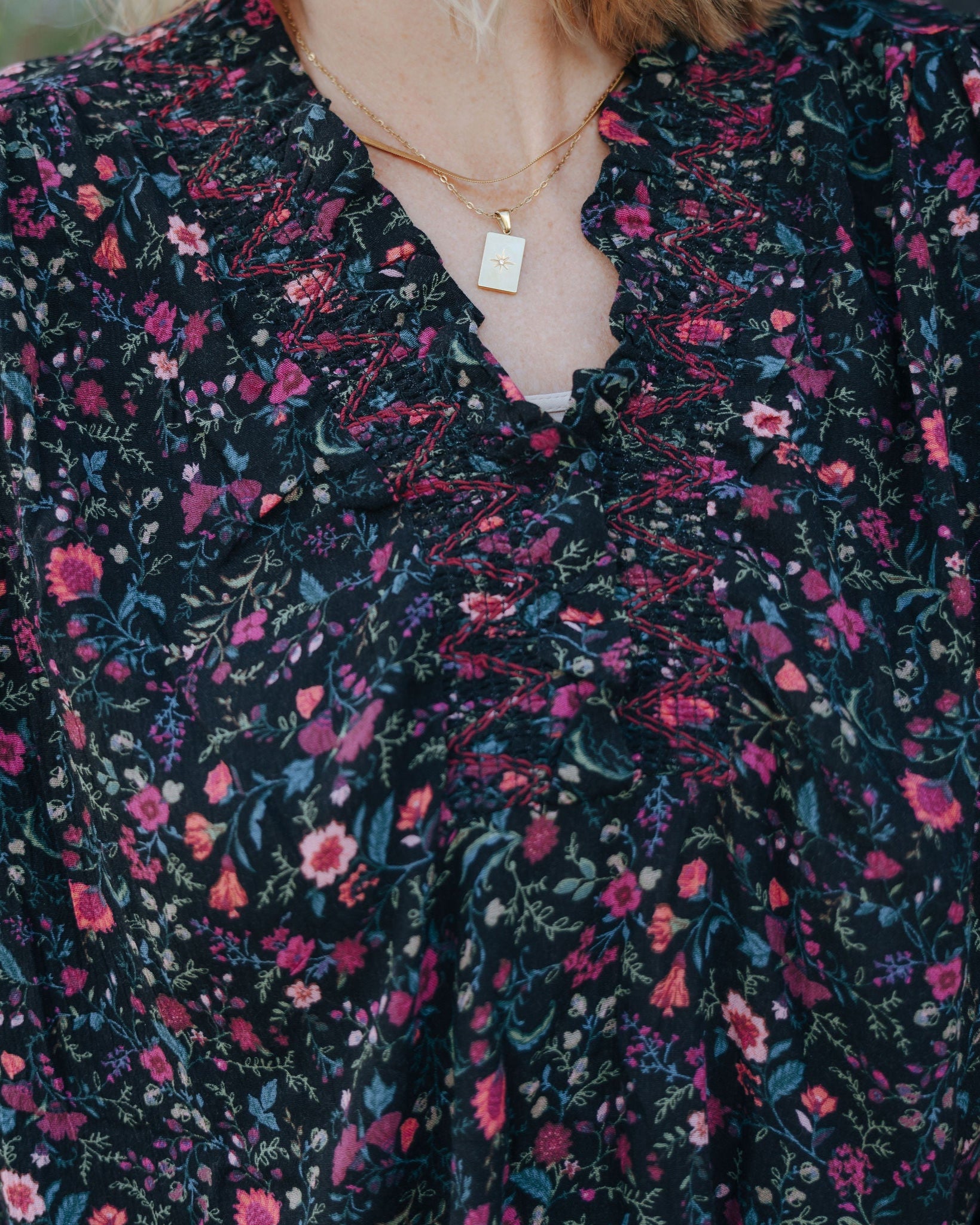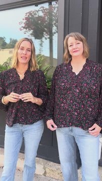 Brighten your wardrobe with the Autumn Skies Blouse, a playful blend of colorful floral patterns and airy gauze fabric. The flattering v-neck adds a touch of elegance, making it perfect for both casual days and classy evenings. Light, comfortable, and full of charm, this blouse brings a fresh, joyful vibe to any outfit.