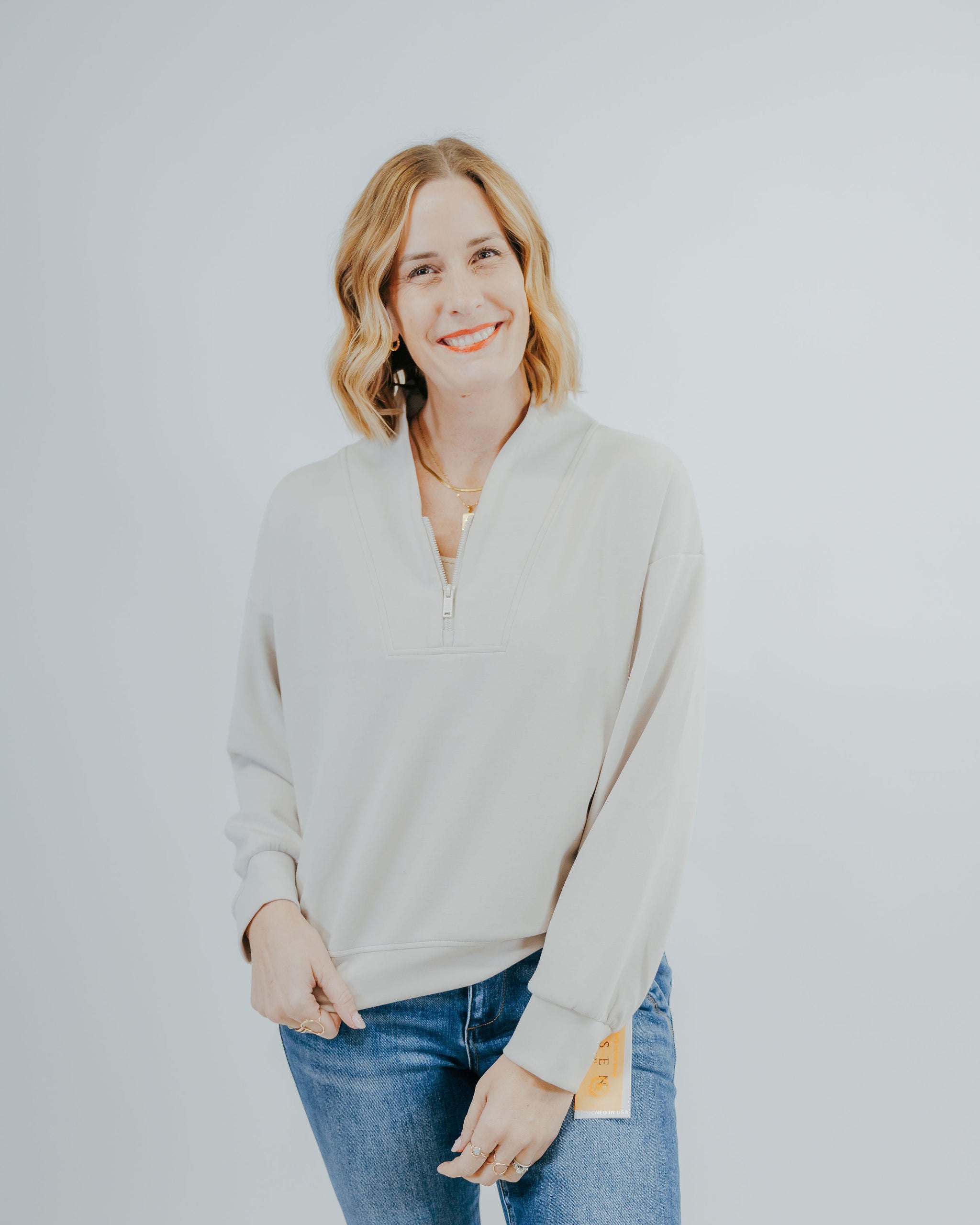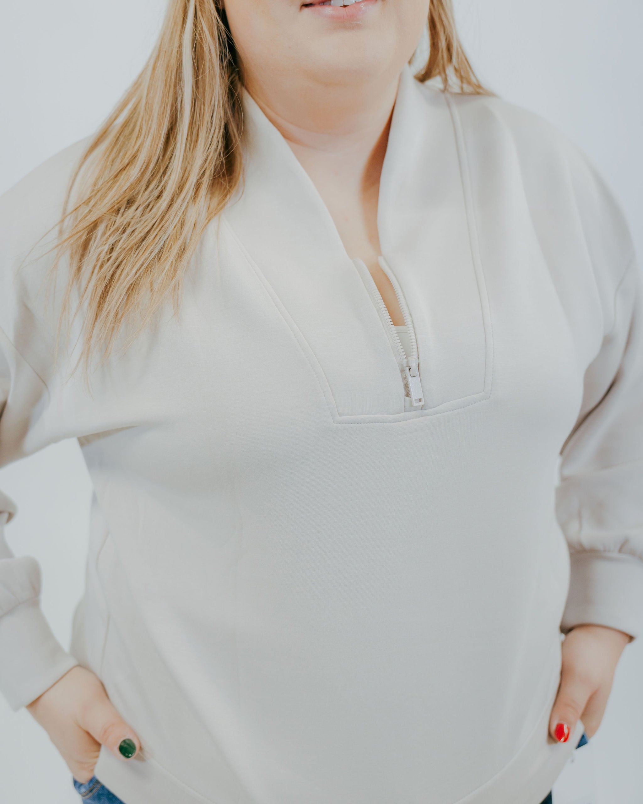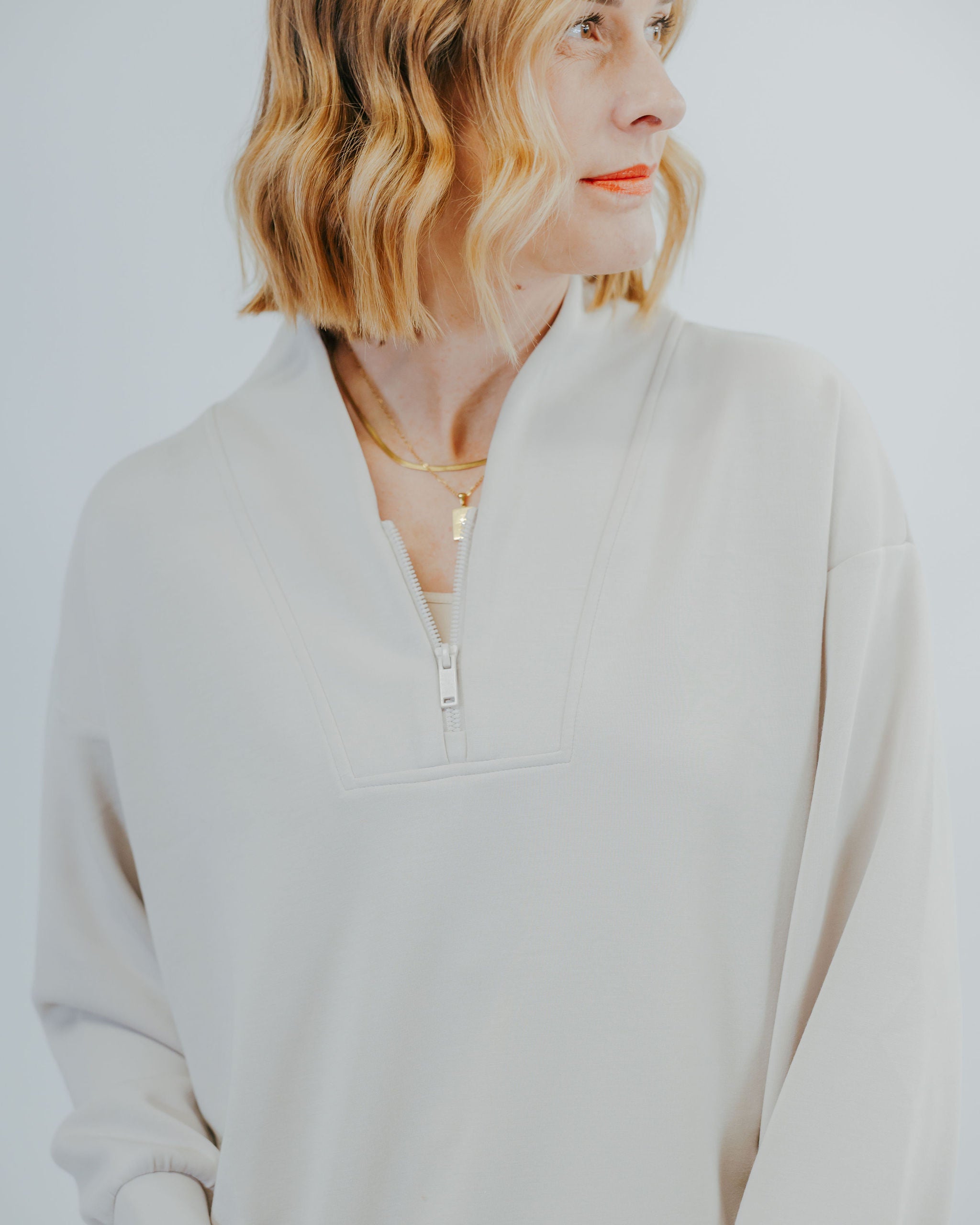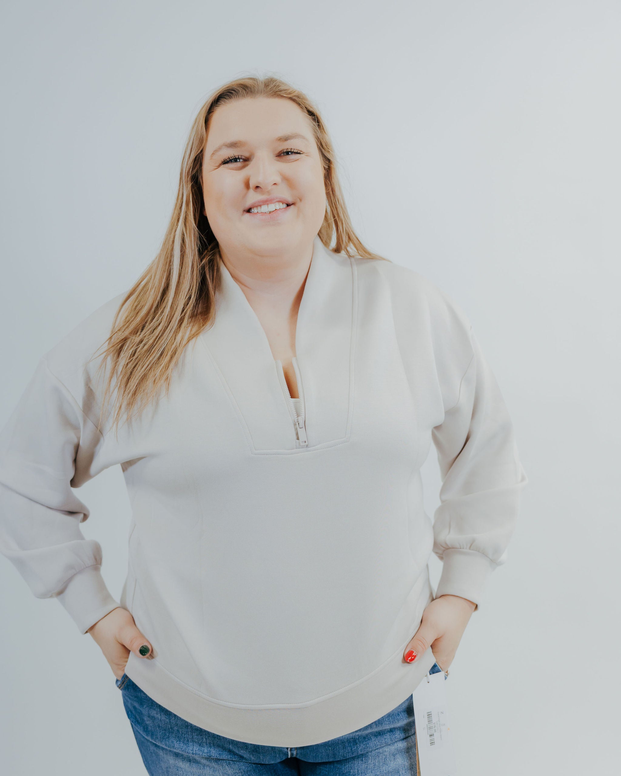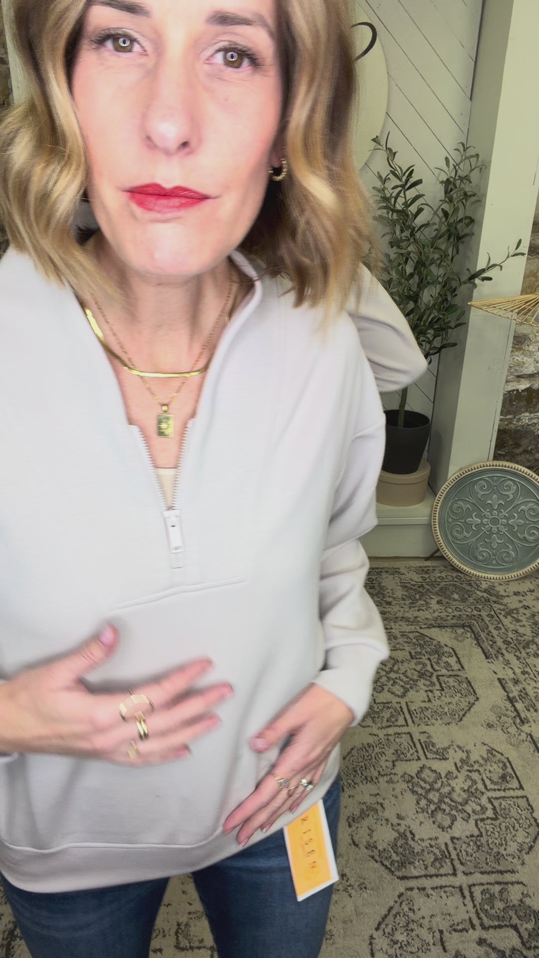 Get ready to snuggle up in this sweatshirt! This v-neck quarter zip is irresistibly soft and cozy, making it your new go-to for laid-back days or chilly evenings. Slip it on for that perfect mix of warm comfort and easy style—you might never want to take it off!