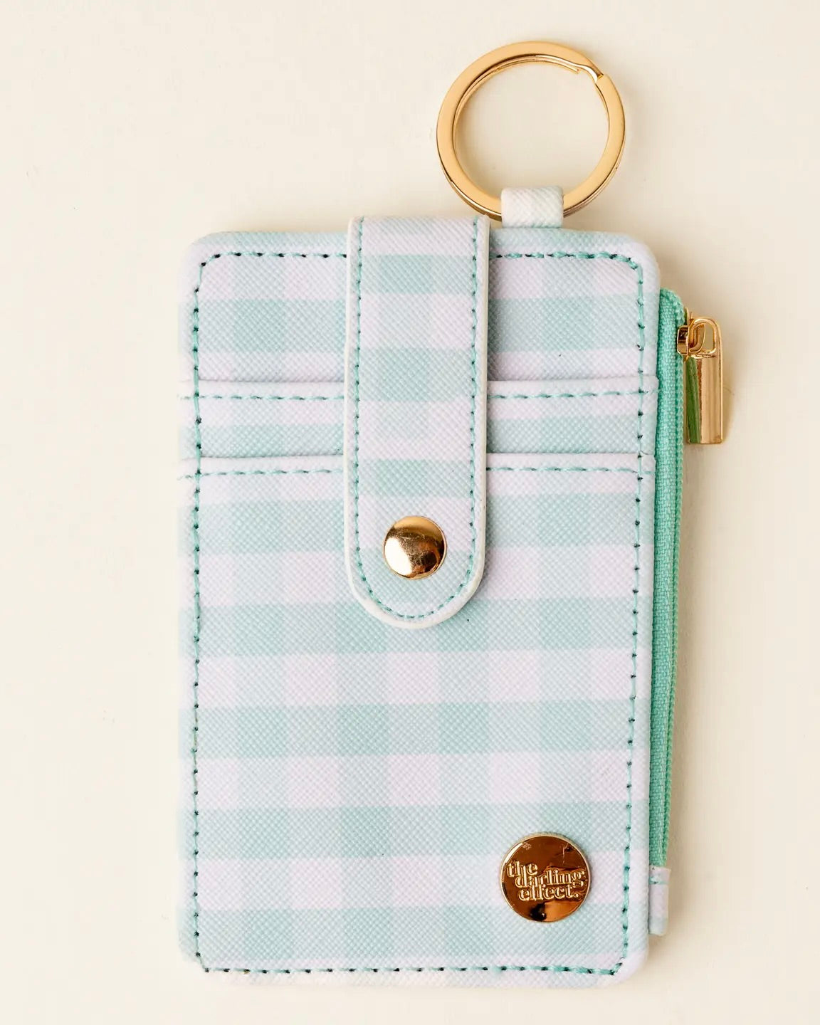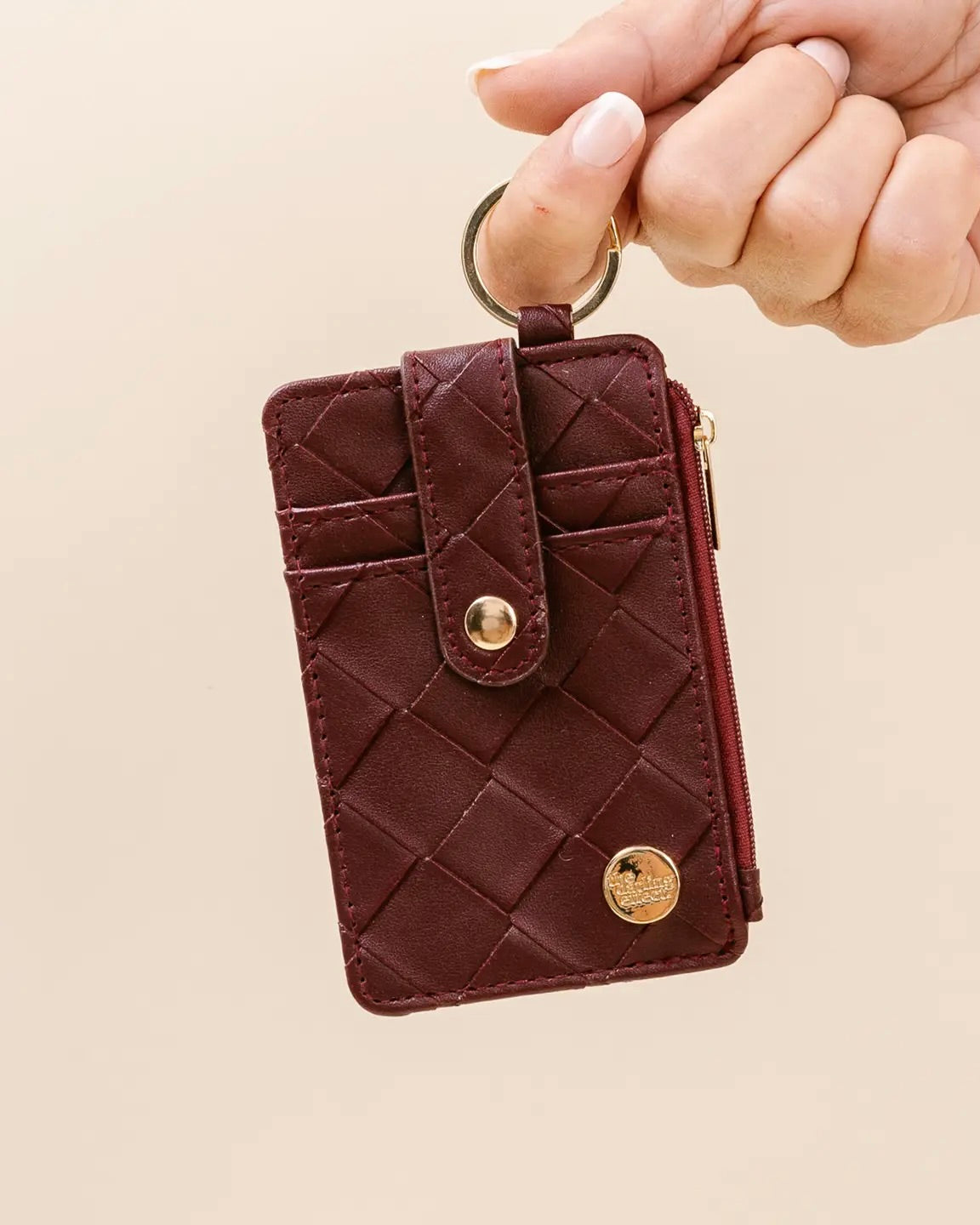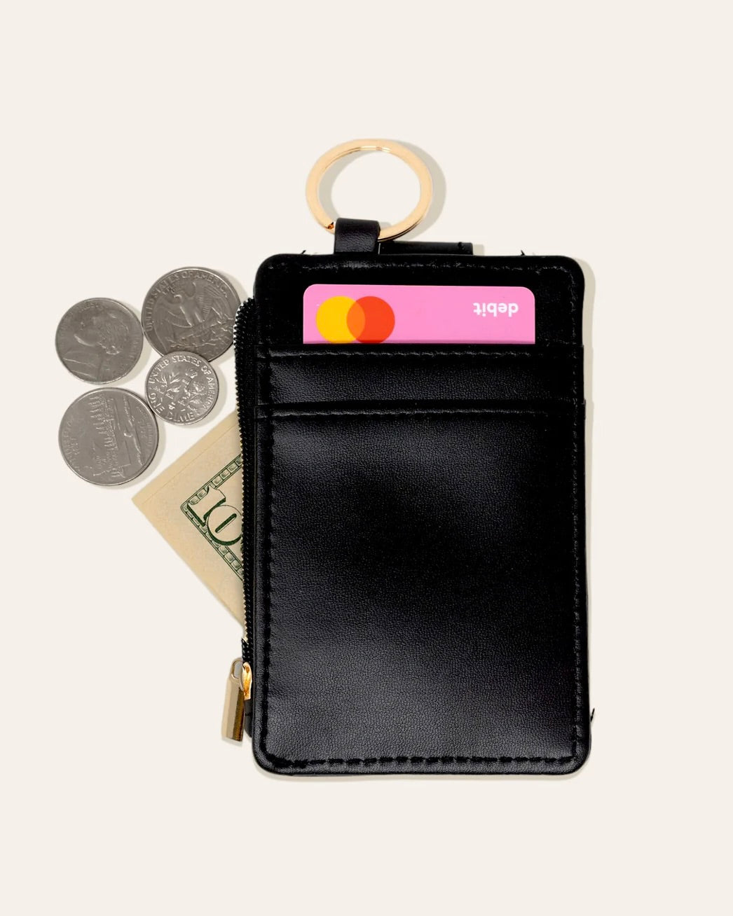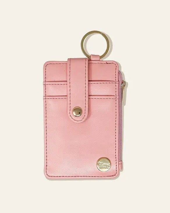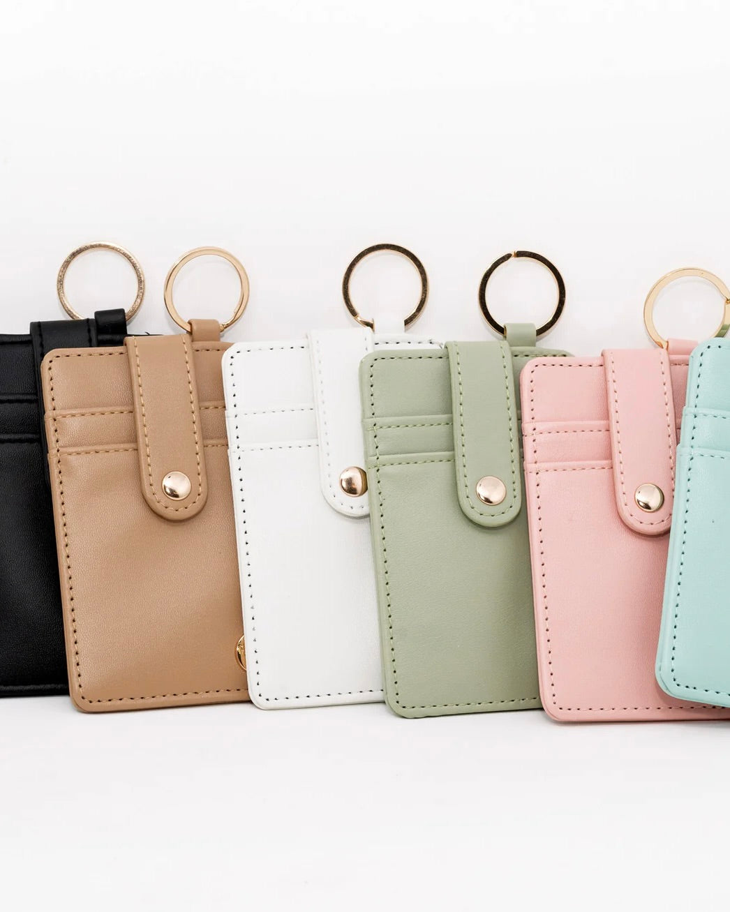 New! Our solid colored keychain card wallet is the perfect accessory to match your wristlet or belt bag! You can latch it on a wristlet and go hands-free with all your essentials. Features: -Zippered Closure and key ring -Holds Your cards, cash, and coins Wallet Dimensions 4.5” X 3” X 0.25”