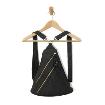 Modern style gets a fun twist with the Peyton Double Zip Convertible Sling/Backpack. Crafted from soft, tumbled vegan suede, this bag features shiny brass-plated zippers and plenty of pockets to stash your essentials effortlessly. Switch up your look with two adjustable straps—wear it as a backpack, sling, or crossbody. Lined with a cheerful floral print, it’s practical, playful, and ready for whatever your day brings. Perfectly sized at 13 x 12.5 x 4.25 inches, it keeps you organized without weighing you down.