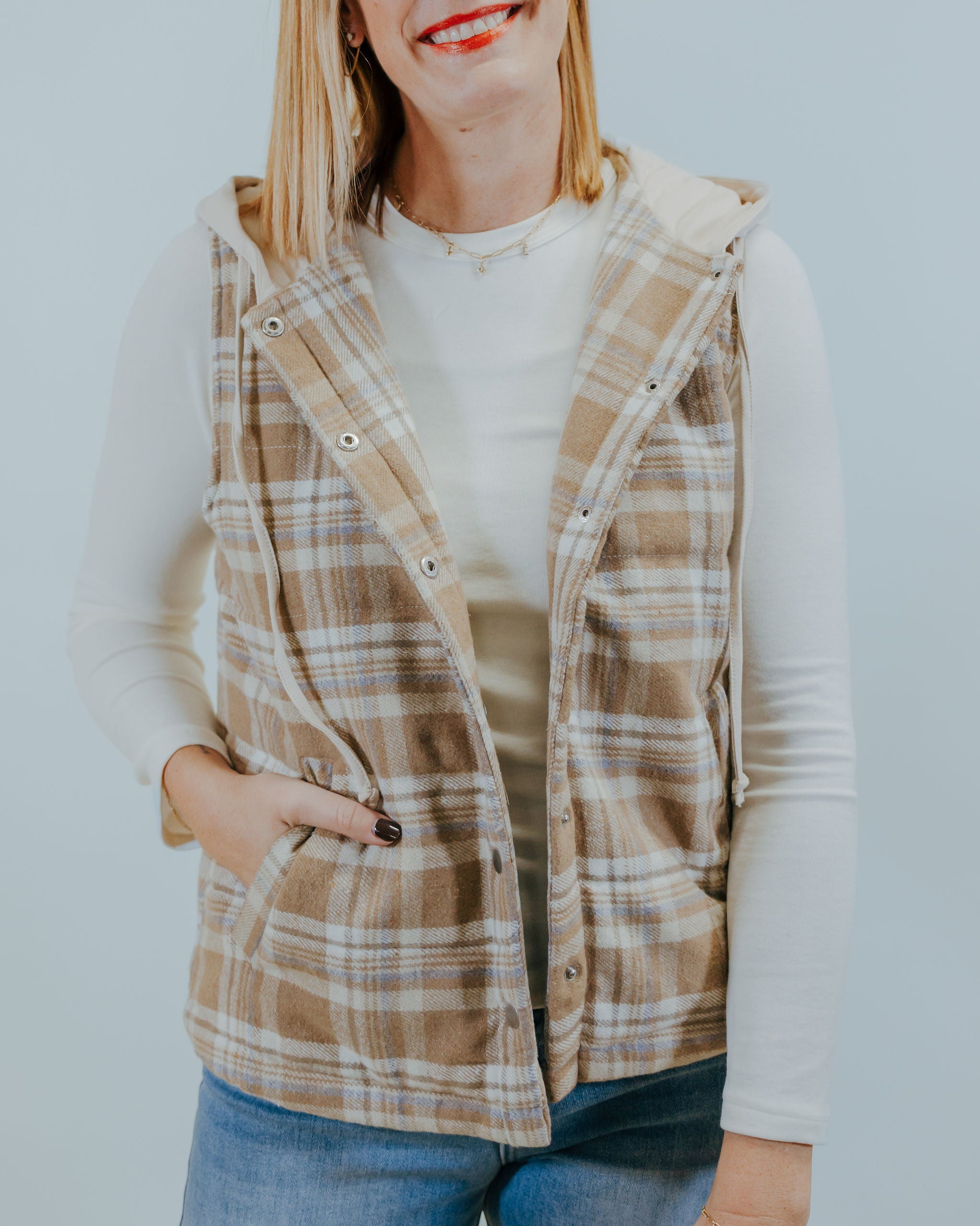 Add a splash of fun to your outfit with the Better Times Vest. This cute hooded plaid vest brings cozy warmth and playful style together, making it perfect for layering on those crisp days. Its charming pattern and snug hood add a cheerful twist to any look. Ready for better times? This vest is too!