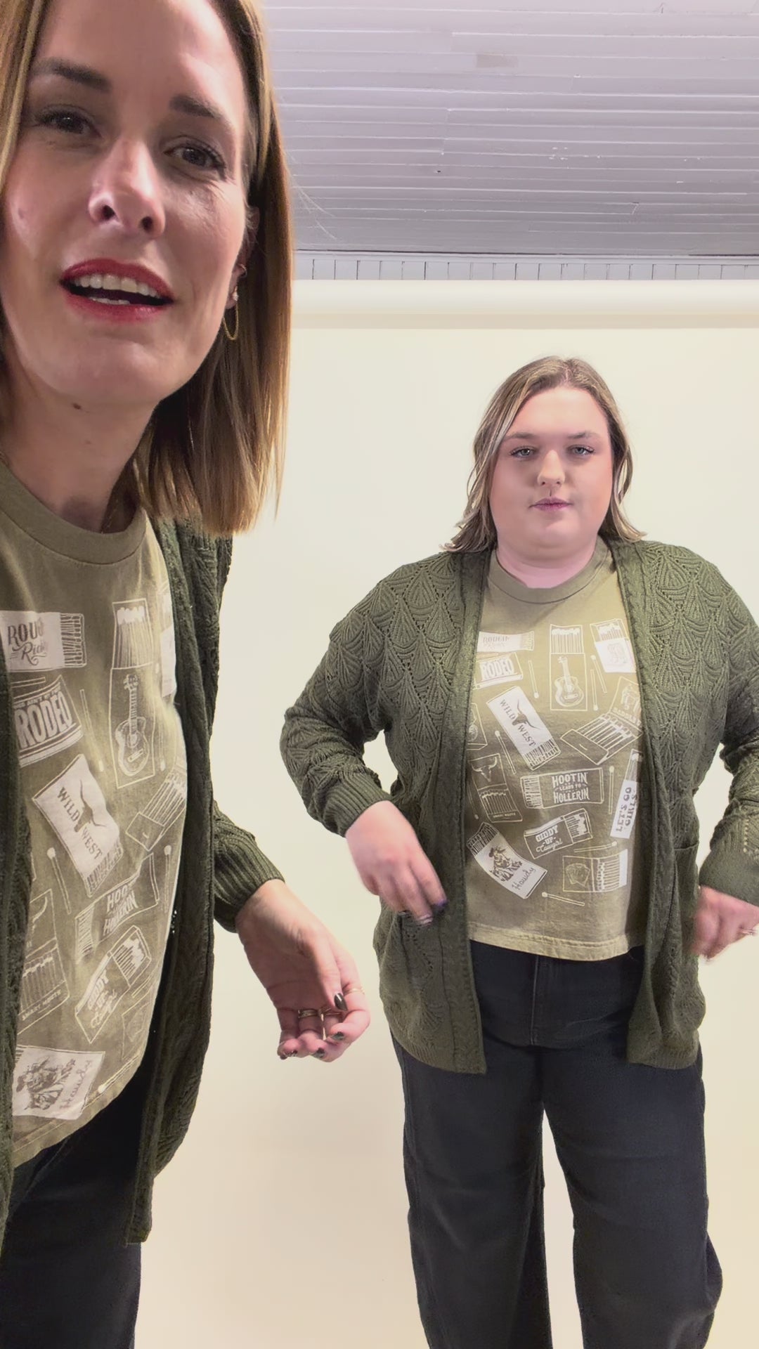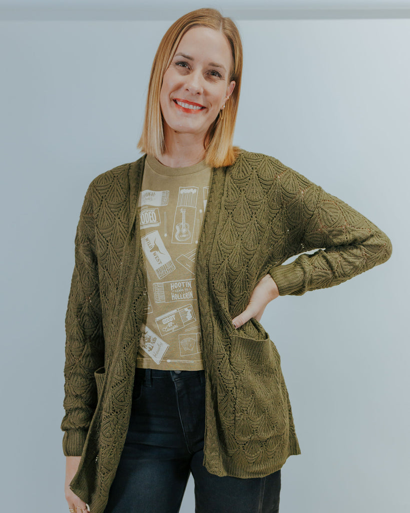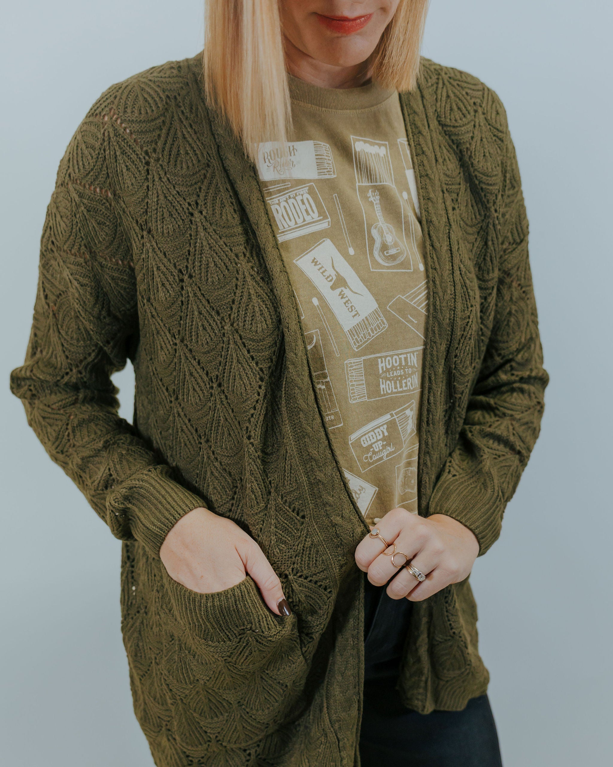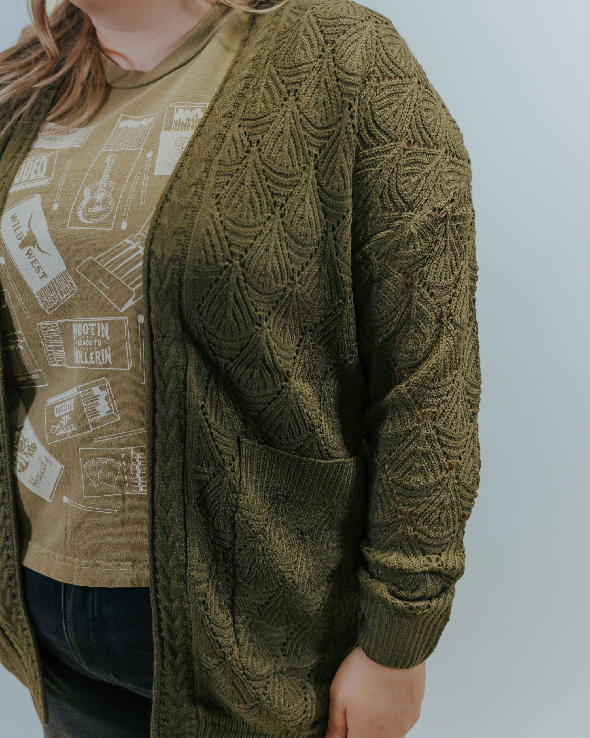 Cozy meets cute with the Oneida Open Knit Cardigan in Olive. This playful piece adds a light layer of warmth and style, perfect for breezy days or cool evenings. Its open knit design creates a relaxed, breezy fit that effortlessly brightens any outfit with a dash of charm. Wrap yourself in softness and let your look bloom with fresh, effortless vibes.