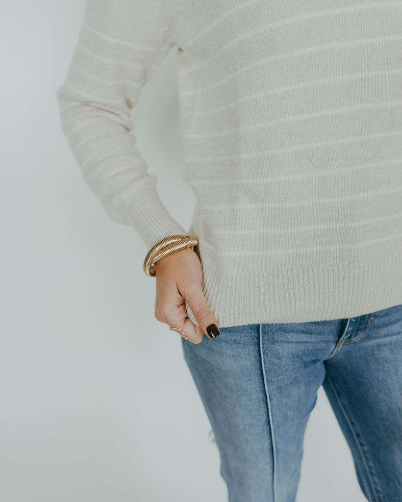 Embrace cozy days with the Once Was Top, featuring soft long sleeves and playful striped patterns. Perfect for layering or wearing solo, its gentle fabric keeps you comfy while adding a fun, casual vibe to your outfit. Stay stylishly snug all day long!