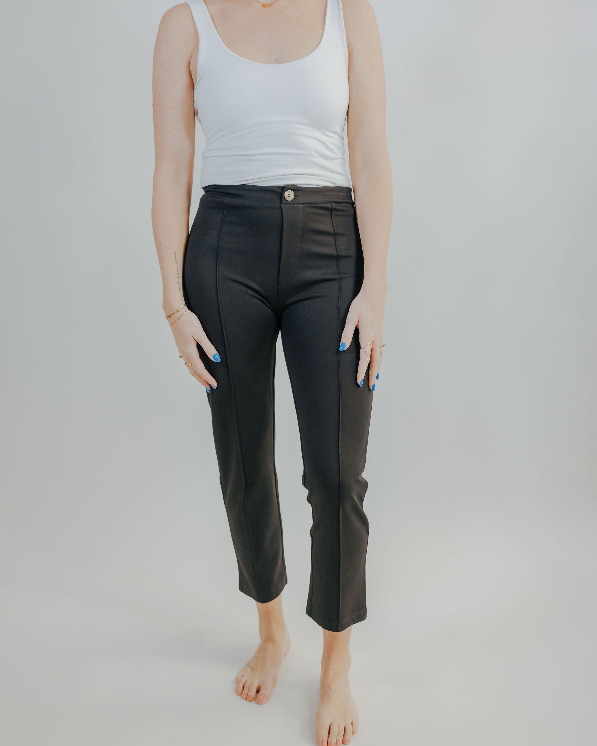 Slip into sophistication with these playful black dress pants that do the heavy lifting for you. The pull-on design means zero wrestling with zippers, while delicate pintuck detailing adds a touch of polish to your everyday look. Classic, comfortable, and ready for anything—these bottoms are your new go-to for looking put-together without the fuss.