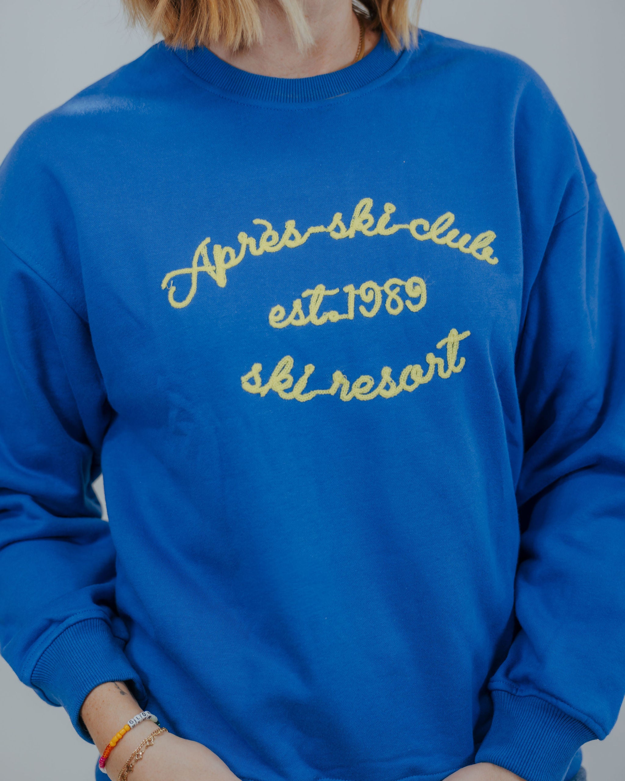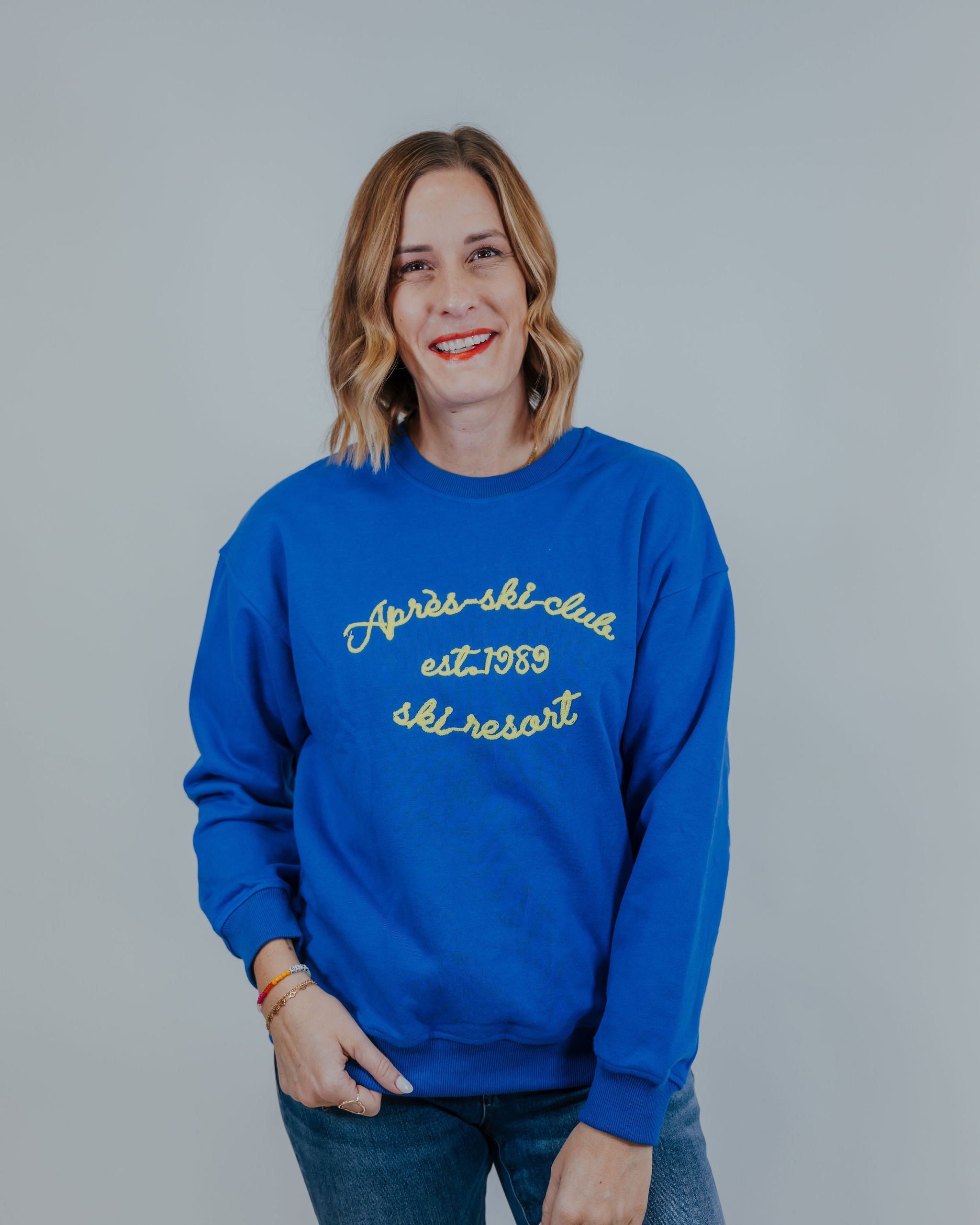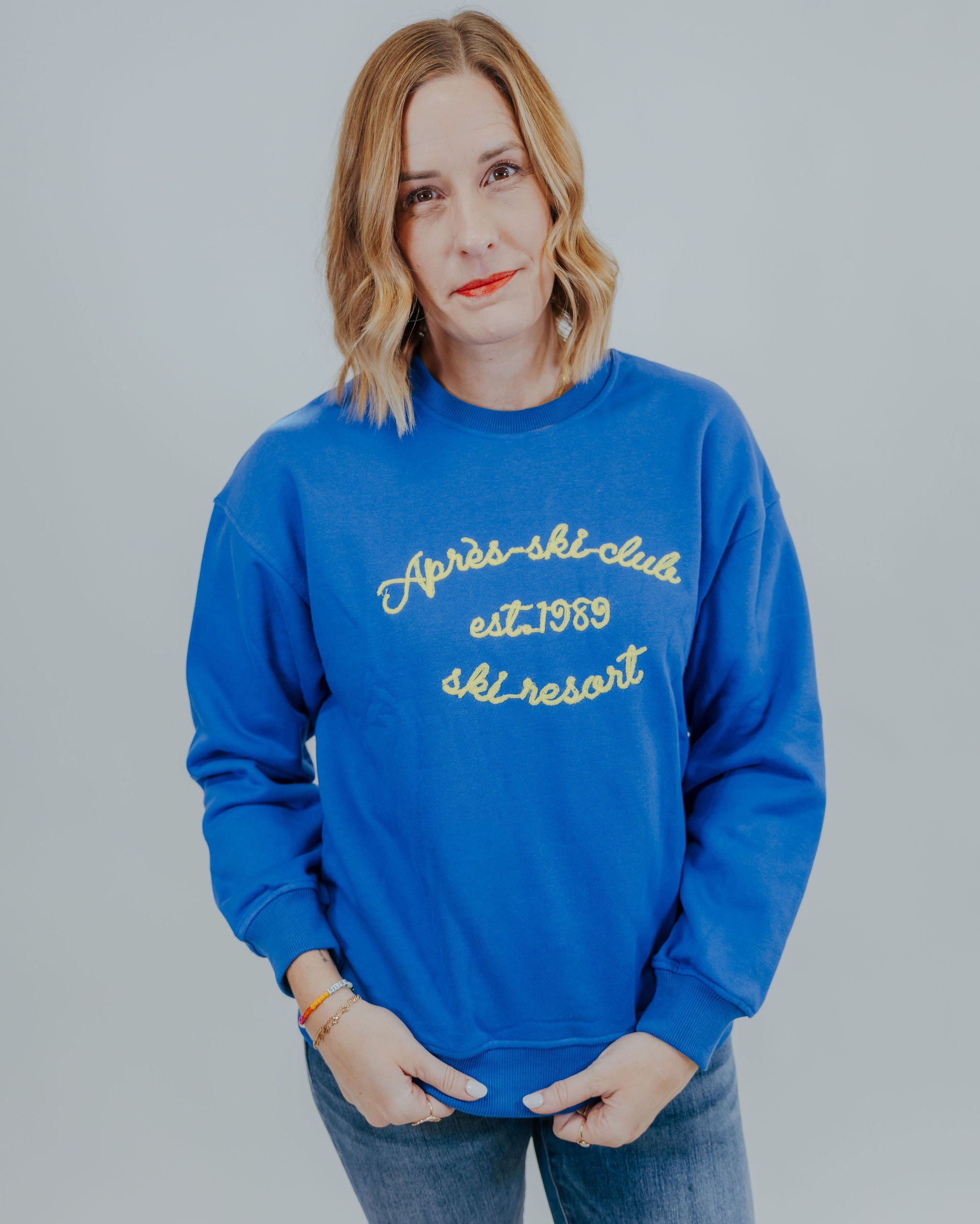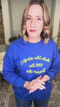 Cozy up in this adorable crewneck sweatshirt featuring a charming "Apres Ski Club" saying that celebrates those perfect moments by the fireplace. Perfect for lounging after a day on the slopes or showing off your love for winter getaways. Soft, comfortable, and undeniably cute—this piece is your new go-to for casual winter style.
