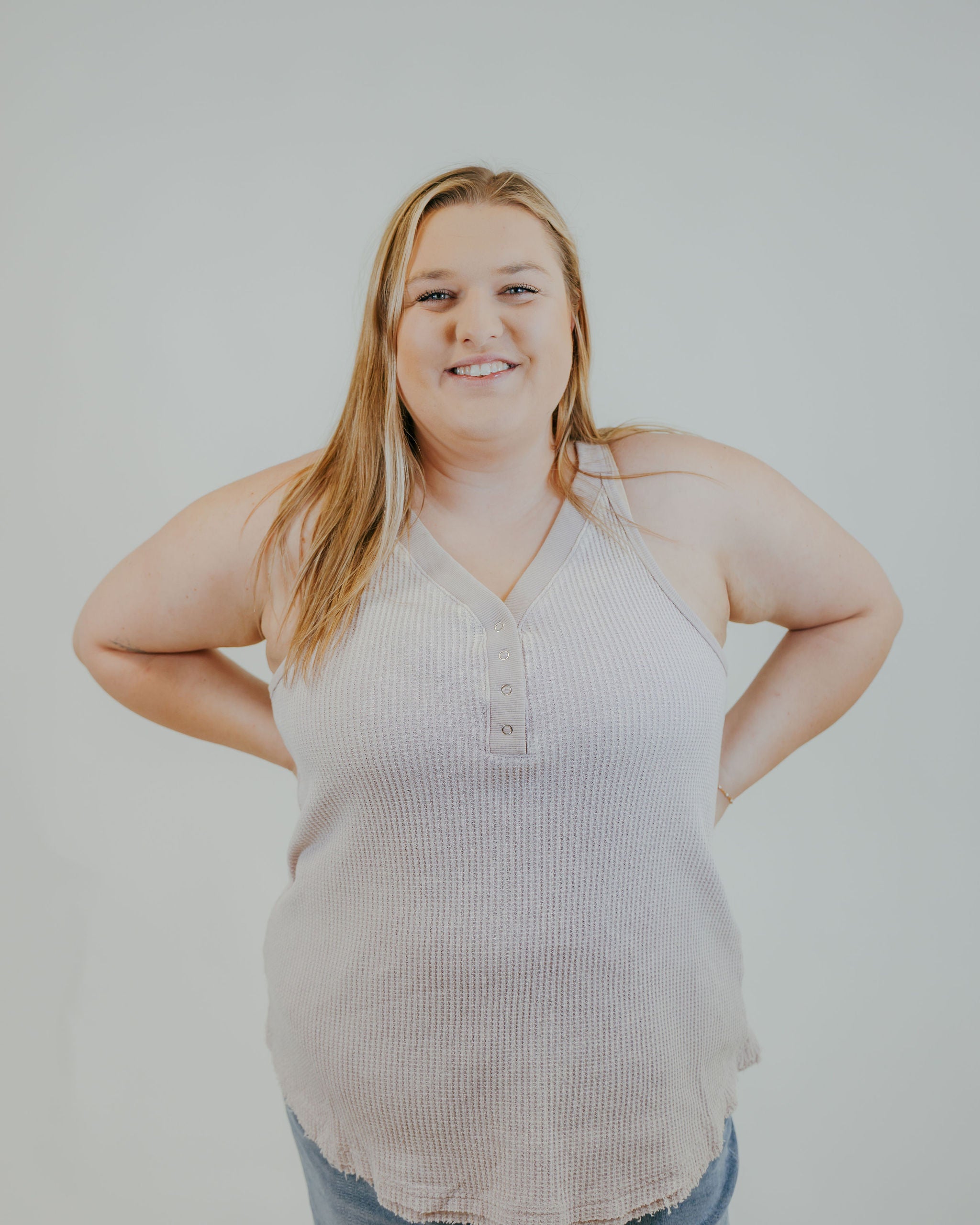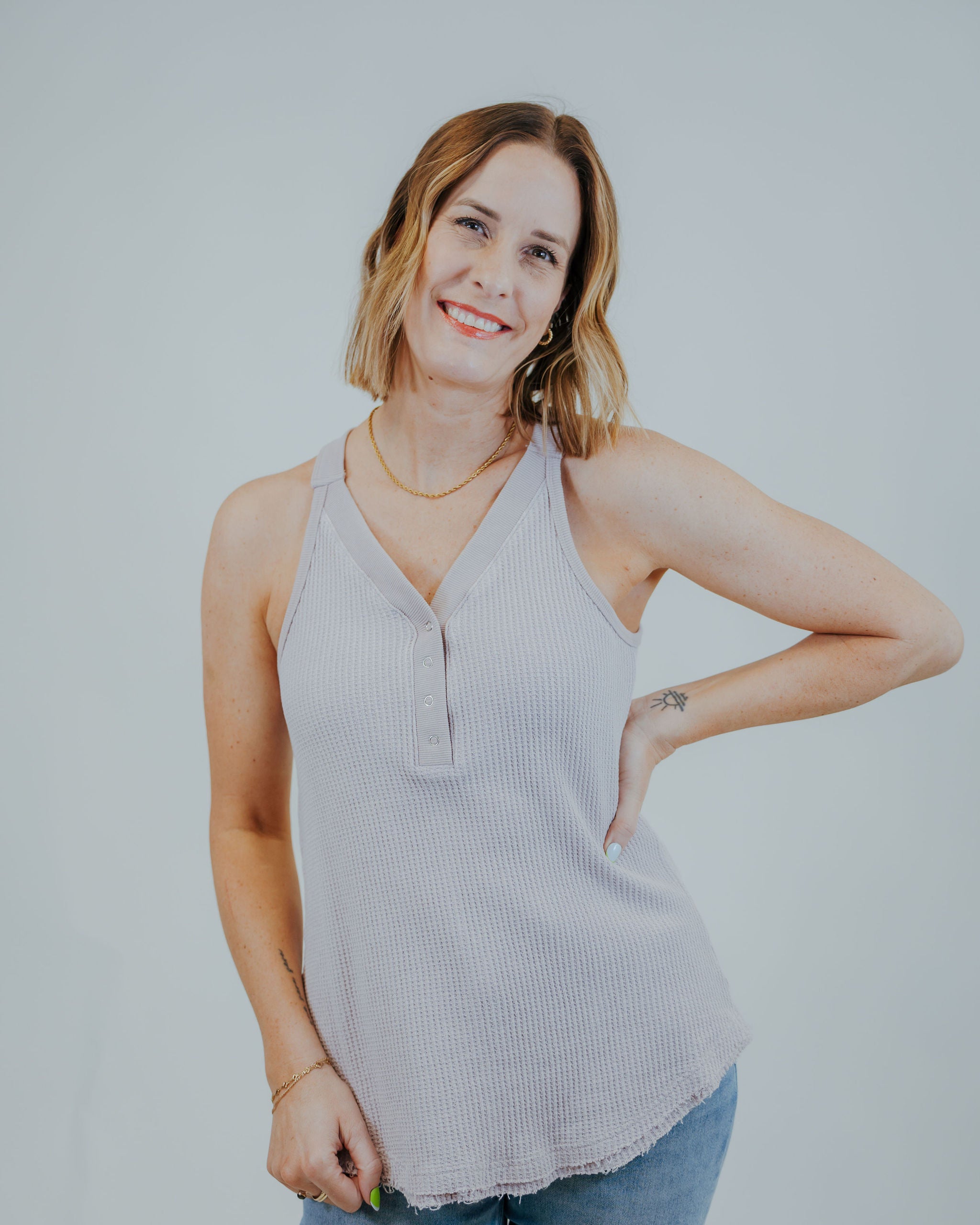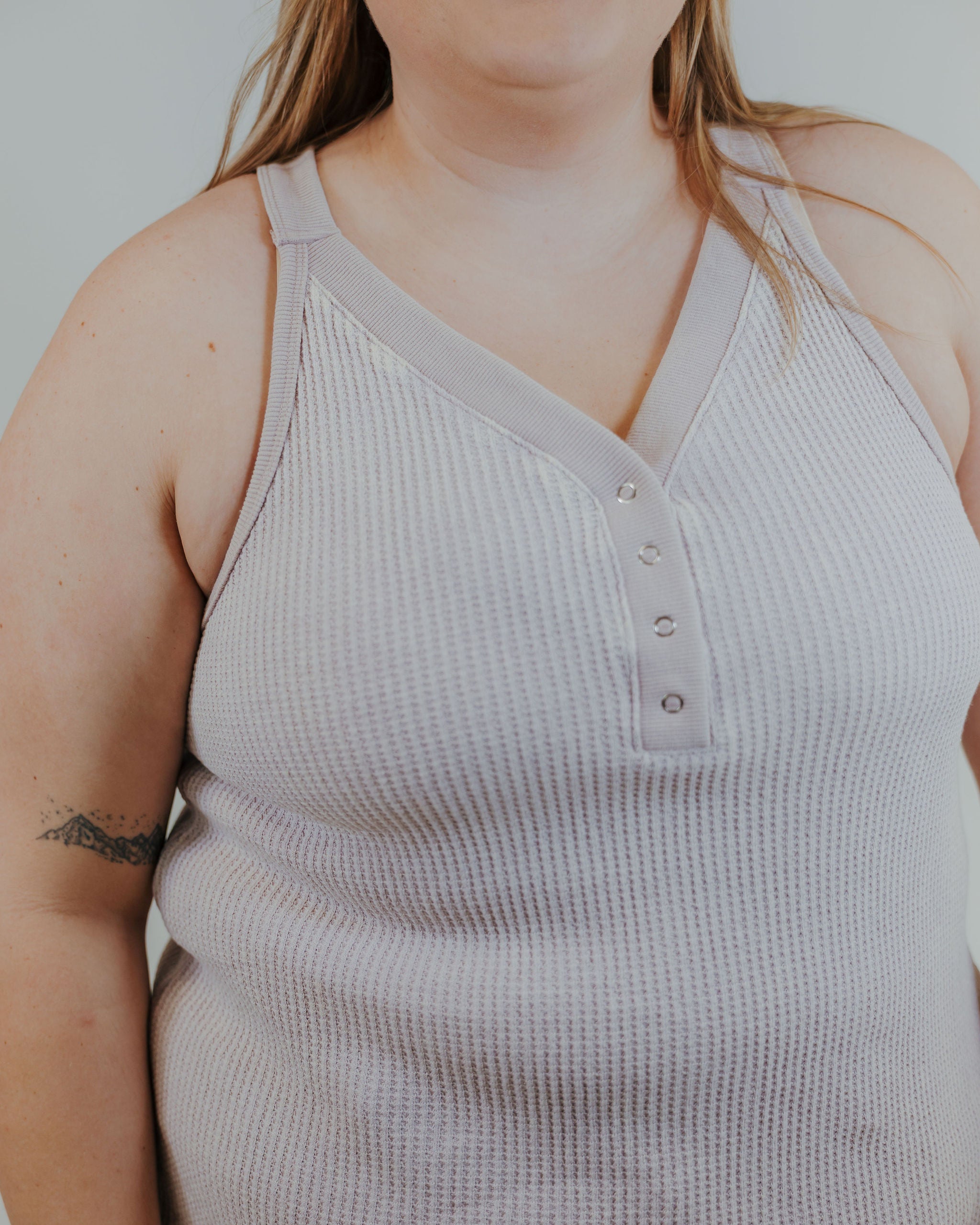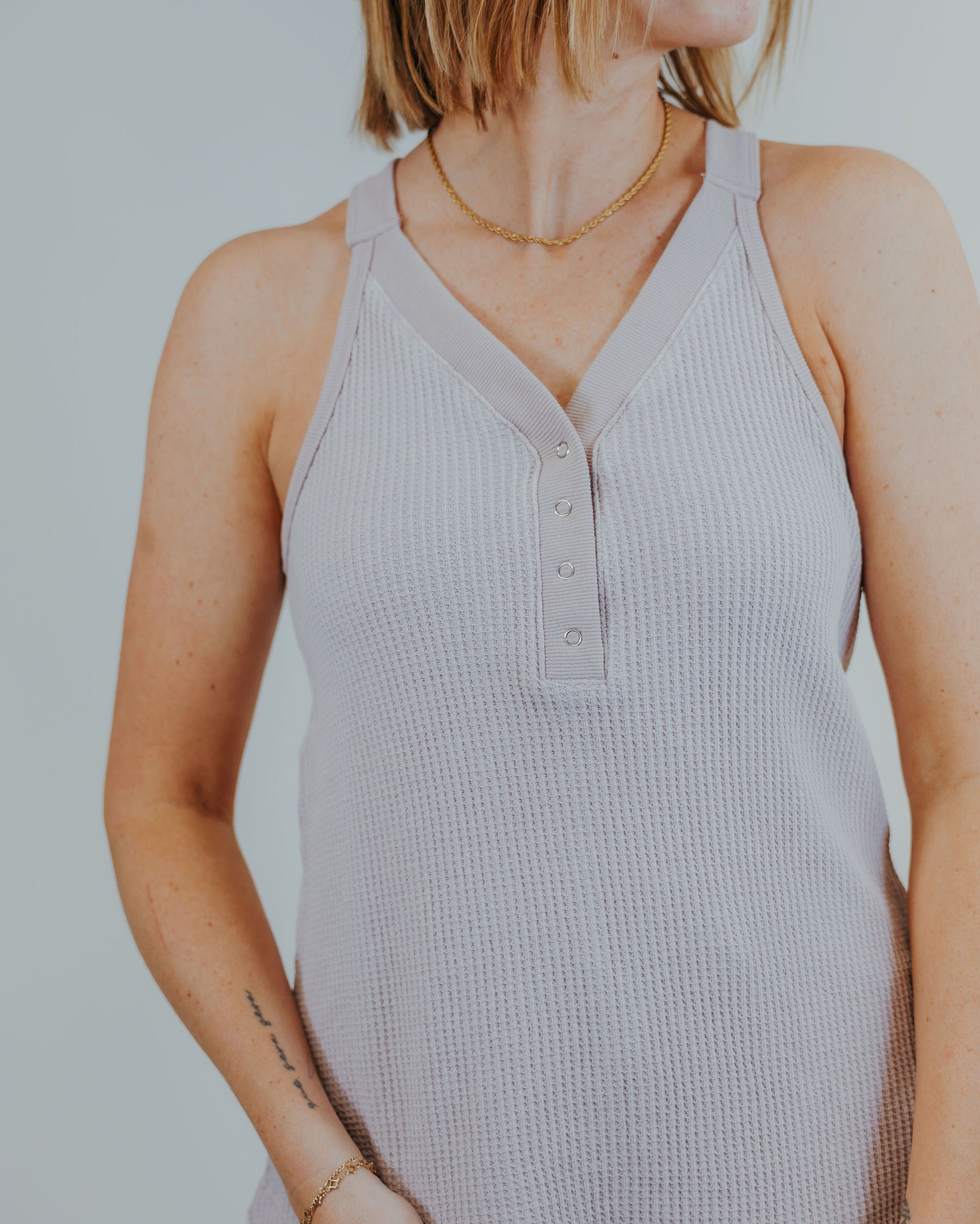 Stay cozy and cute in the Give Me Thermal Tank! This playful tank features soft thermal fabric that hugs you gently, while convenient snaps add a fun, functional twist. Perfect for layering or wearing solo, it keeps your look effortless and your comfort on point all day long.