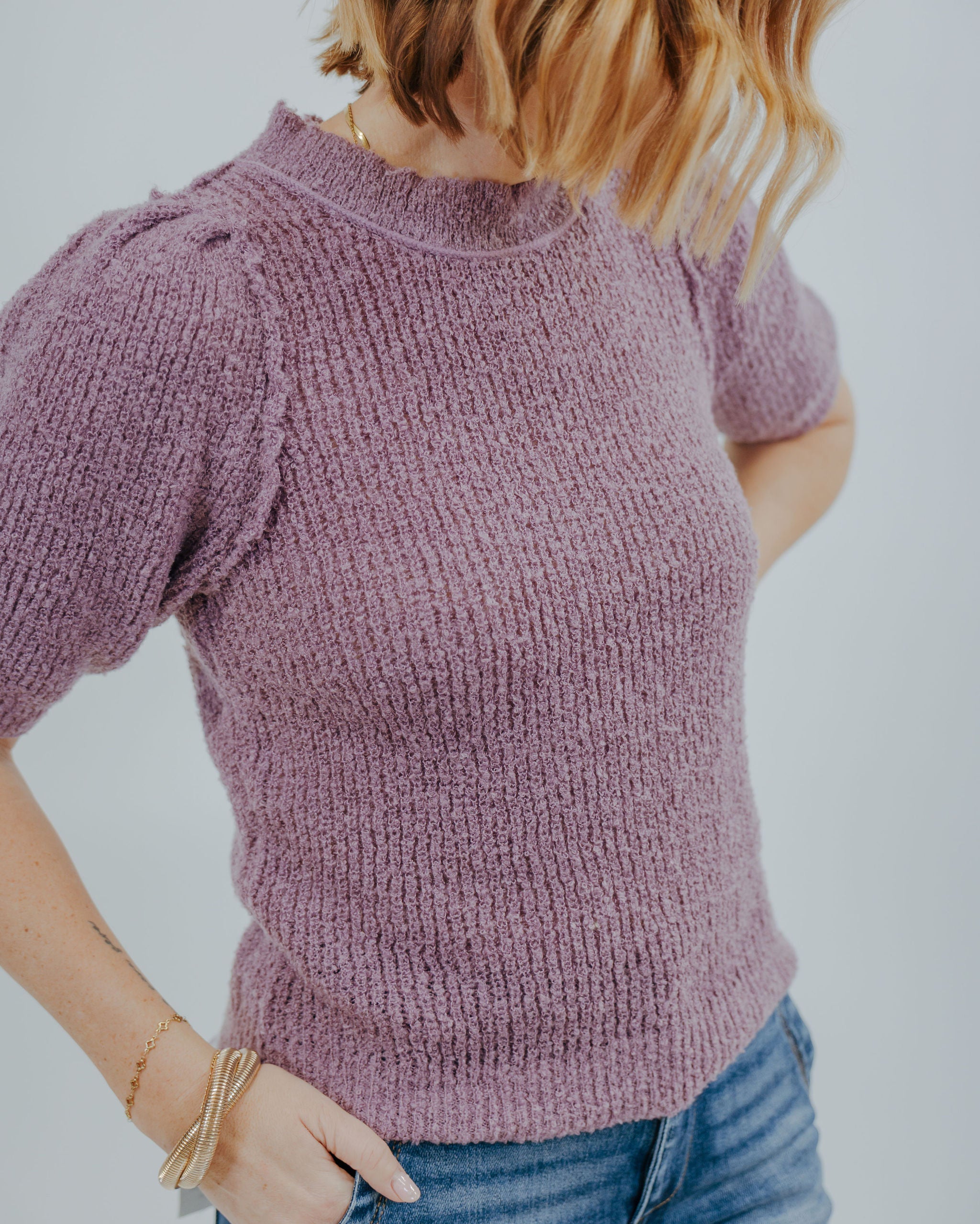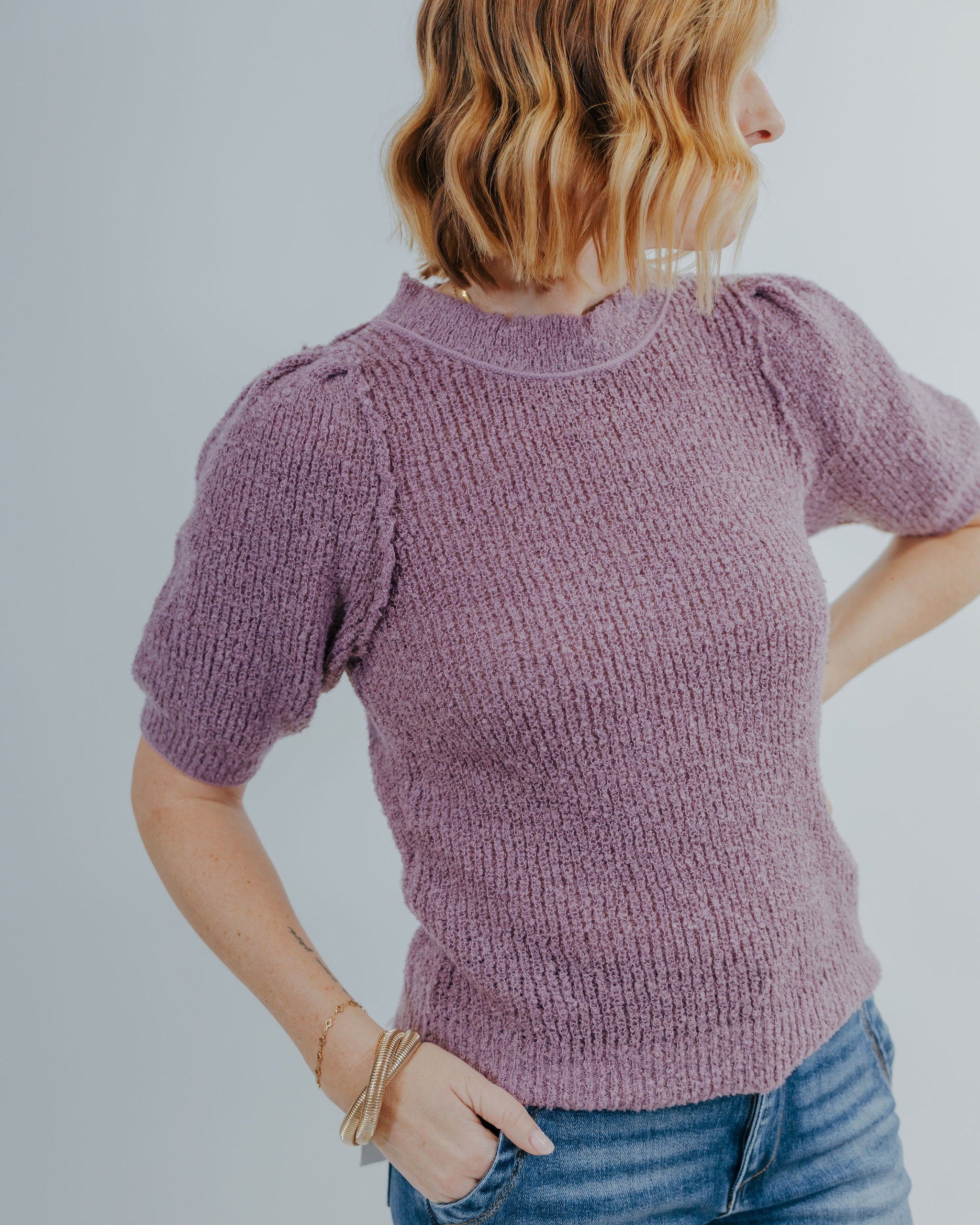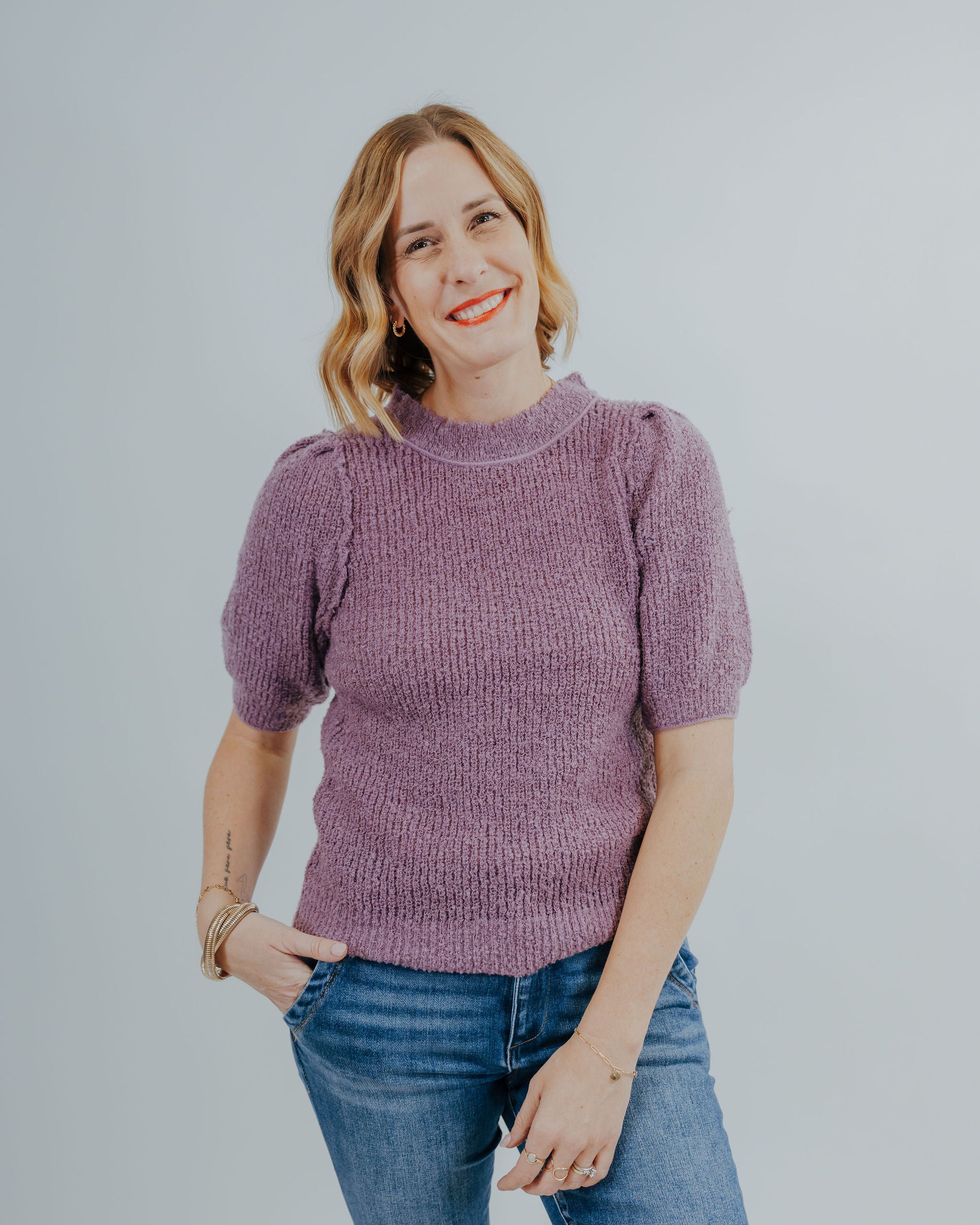 Brighten your wardrobe with the Good Thinking Top, featuring a charming purple knit fabric and adorable sleeves that add a playful twist to your look. Soft and comfy, this top is perfect for cozy days or casual outings where a cute touch makes all the difference.