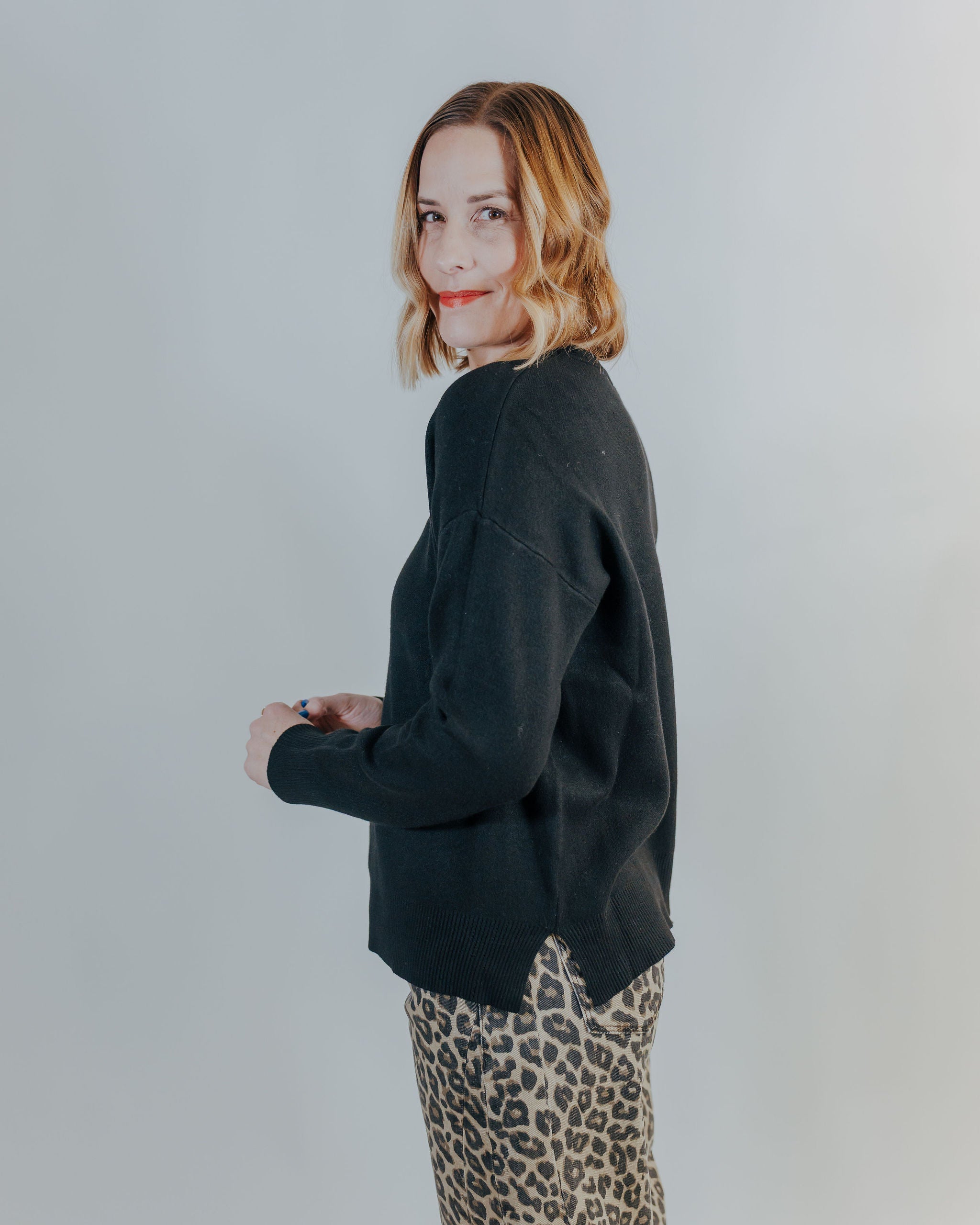 Cozy up in the Goodbye Sweater - Black, featuring a charming drop shoulder design that adds a relaxed, playful vibe. Crafted from irresistibly soft fabric, this sweater feels like a gentle hug on chilly days while effortlessly elevating your casual look. Perfect for lounging or layering, it’s the go-to piece for comfort with a side of sass.