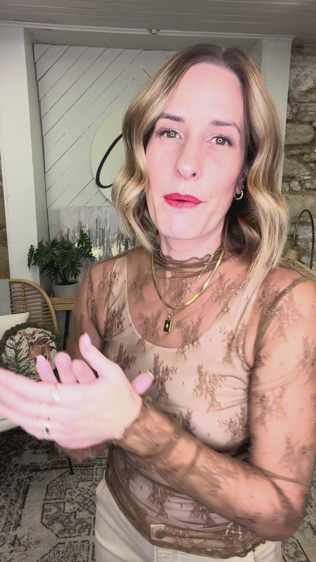 Elevate your style with the Gone Away Lace Top in Tobacco—a perfect piece for playful layering. Its delicate lace adds a touch of romance, while the warm tobacco shade brings cozy charm. Wear it over your favorite camisoles or under jackets for effortless, versatile looks that keep you feeling flirty and fun all day long.