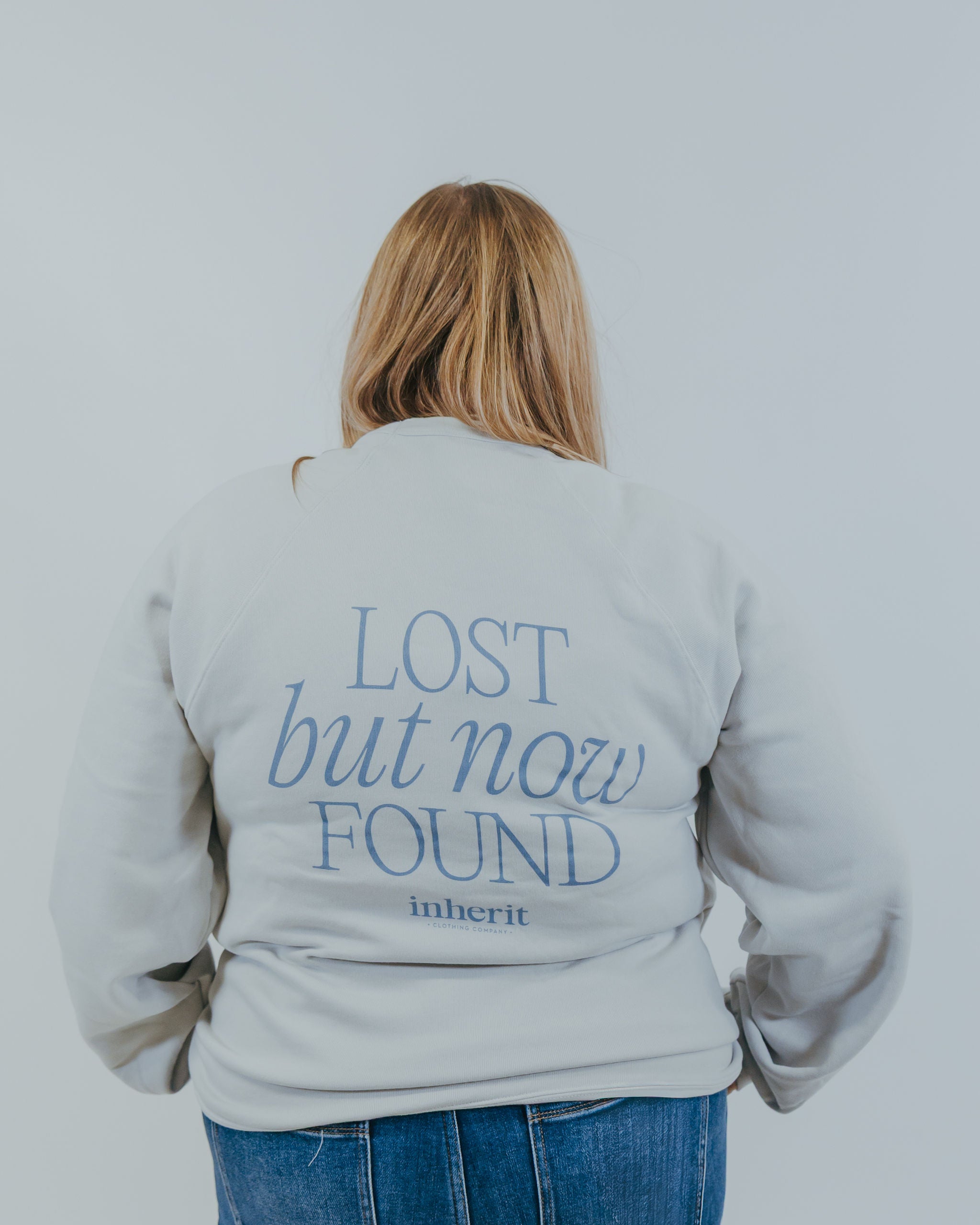 Snuggle up in this delightfully cozy crewneck that's as comforting as a warm hug. The back features an uplifting "Lost But Now Found" graphic—a playful reminder that every journey leads somewhere beautiful. Crafted for maximum coziness, this sweatshirt is your new favorite for lazy days, coffee runs, and everything in between. Soft, sweet, and full of good vibes.