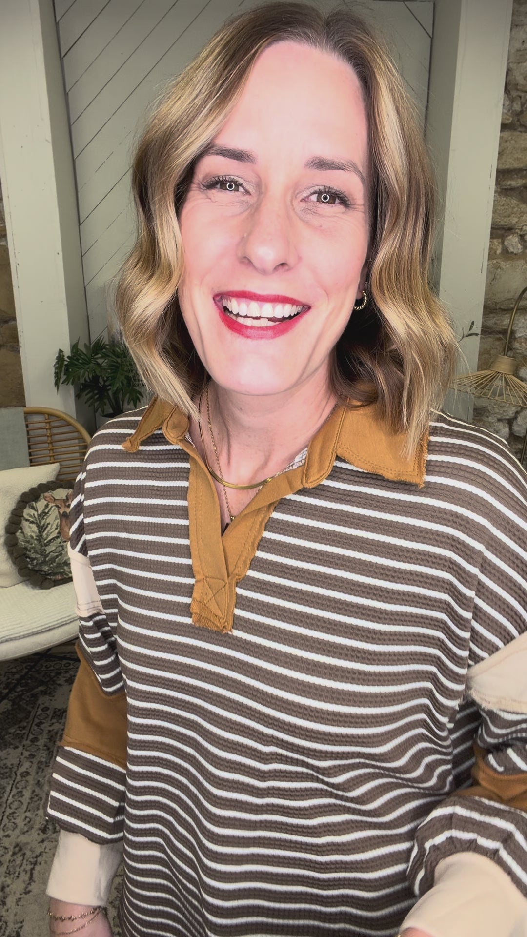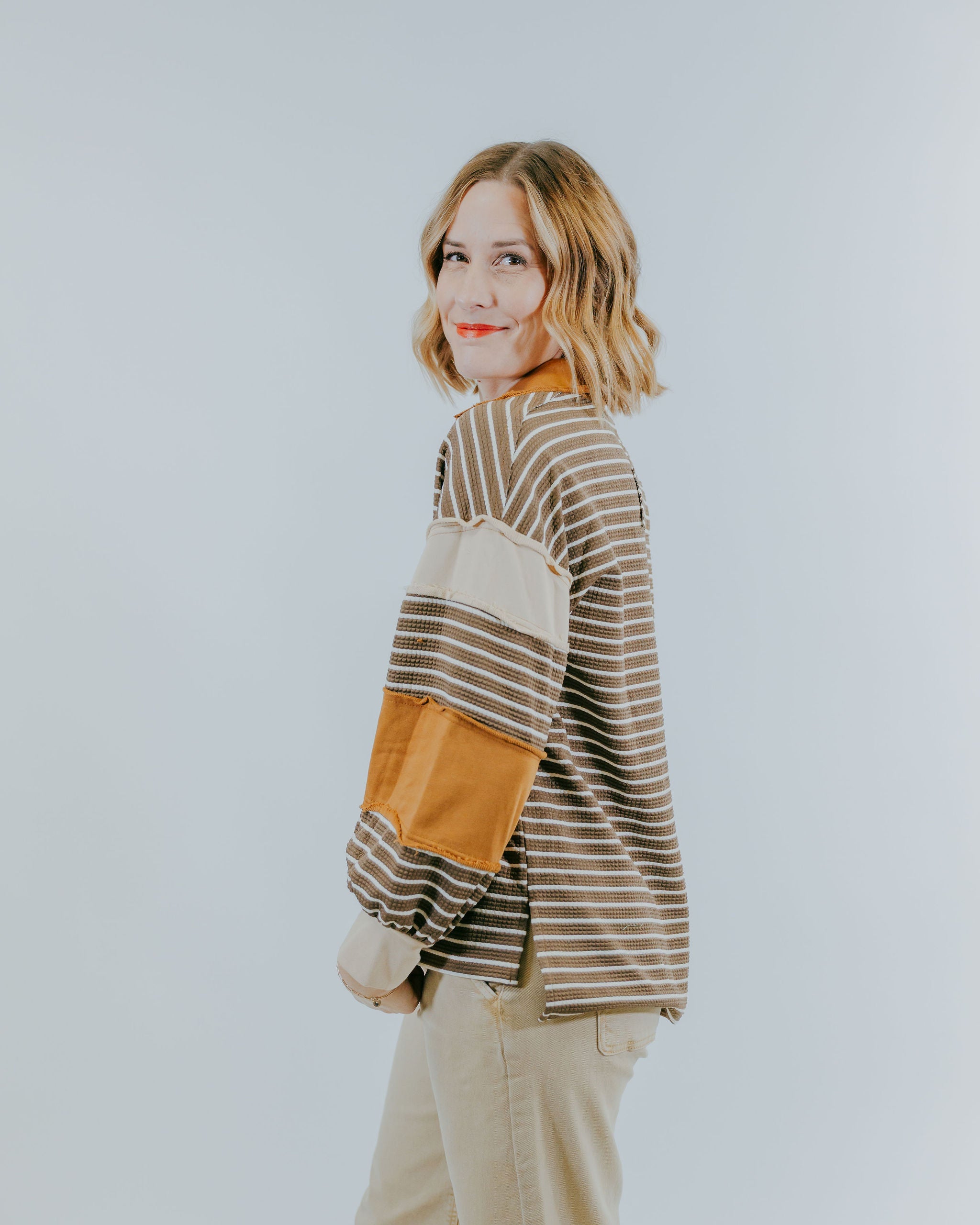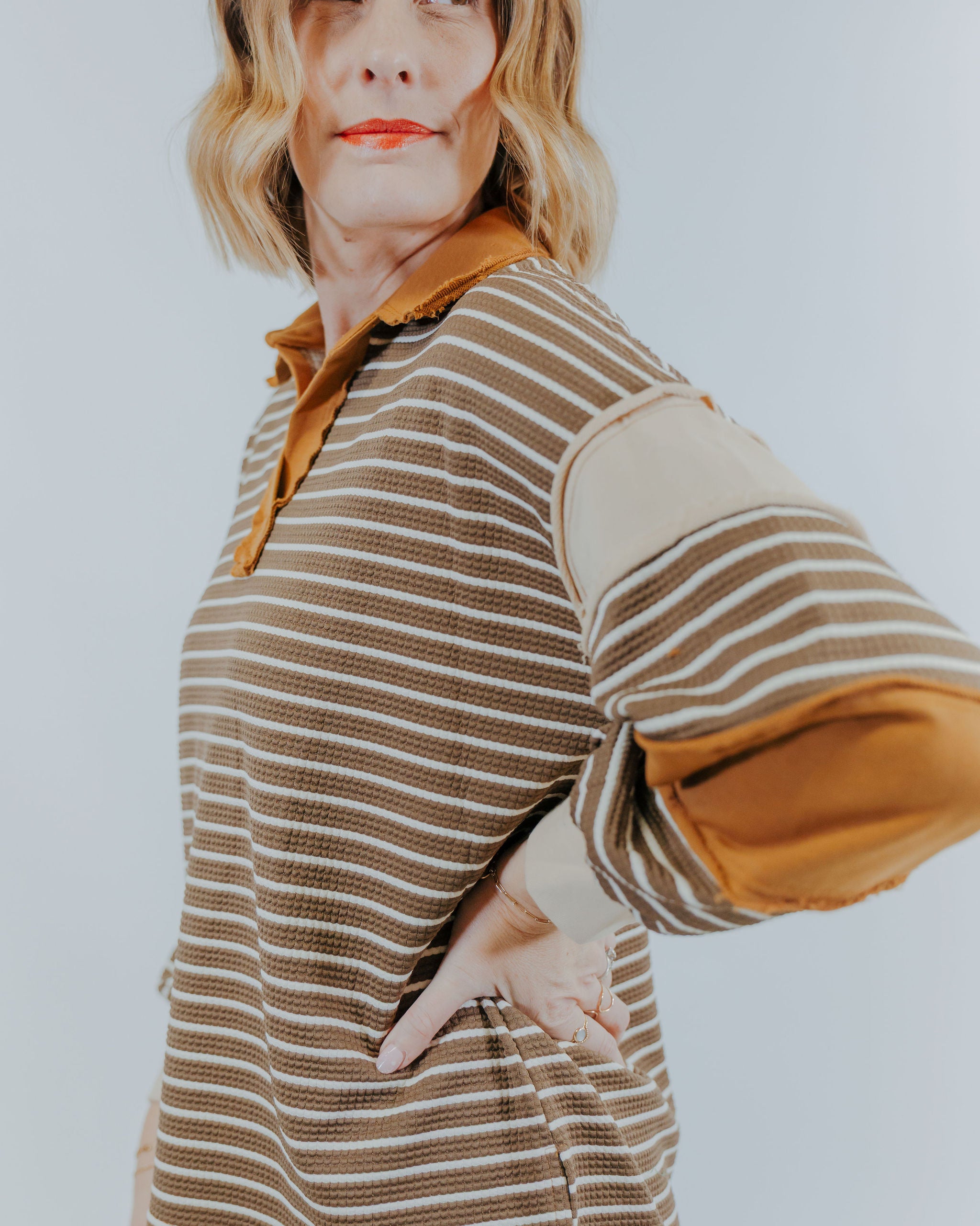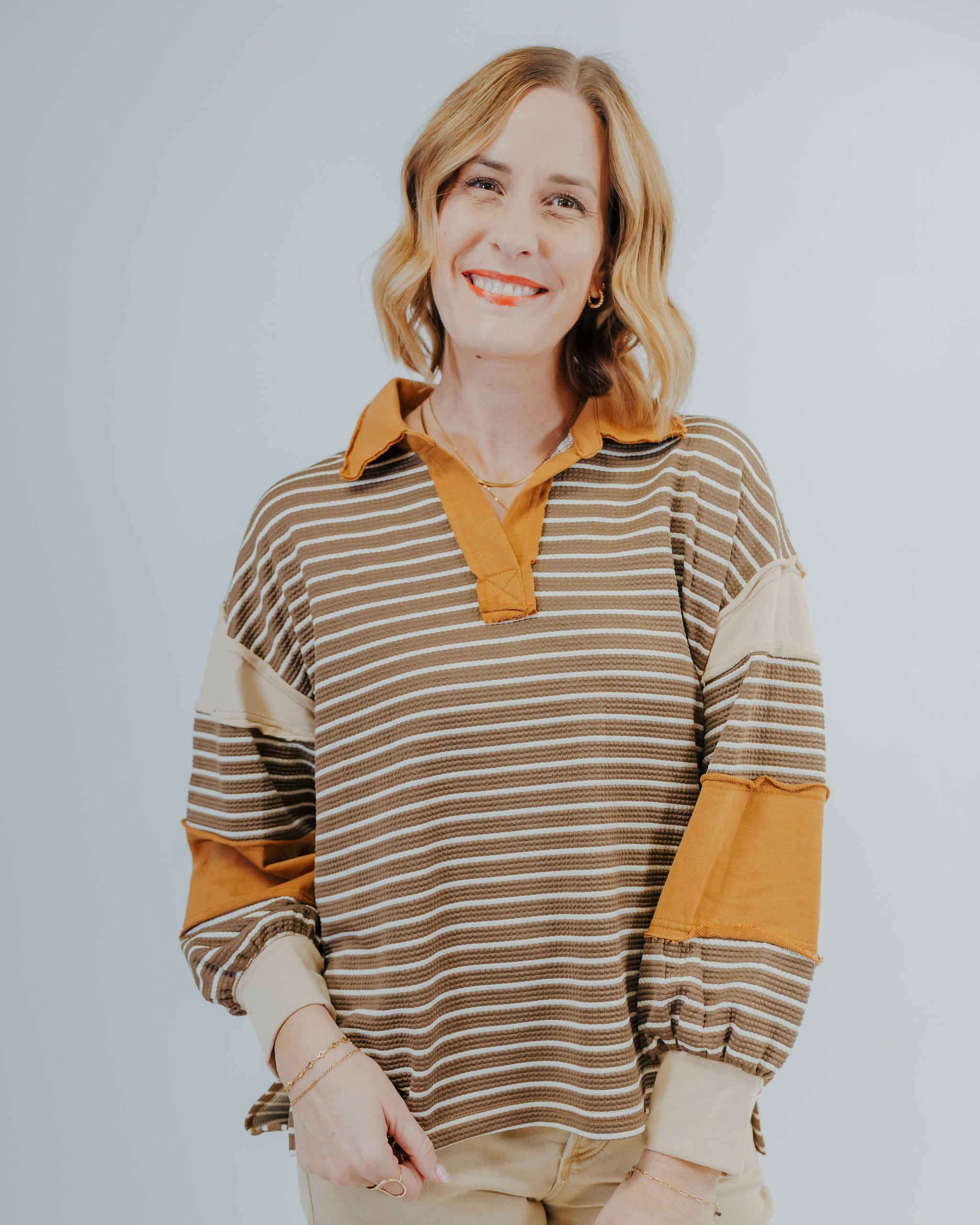 Add a splash of fun to your wardrobe with the My Dear Long Sleeve! Featuring cute stripes, a charming collar, and a playful v-neck, this top is perfect for those who love a little whimsy in their style. Cozy yet stylish, it’s your go-to for effortless, cheerful looks every day.