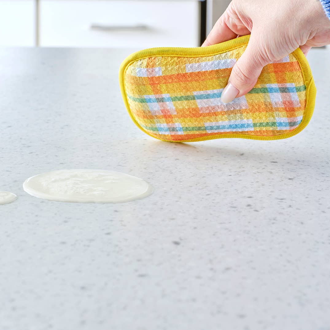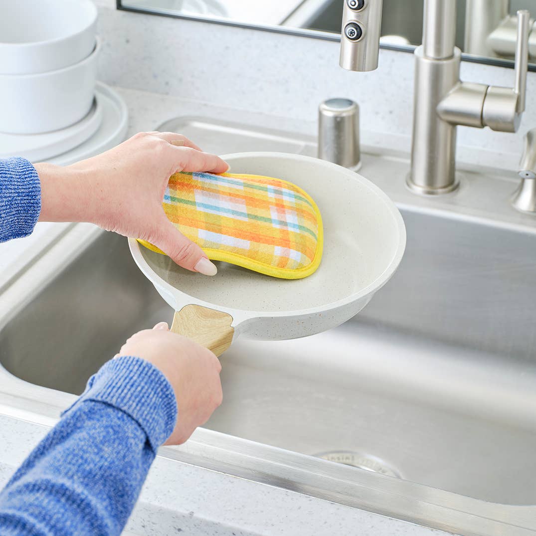 A set of 4 hard working microfiber scrubbies consists of 2 coordinating designs - an abundance of lemon and citrus slices and a brightly colored plaid. These are perfect kitchen clean up helpers.