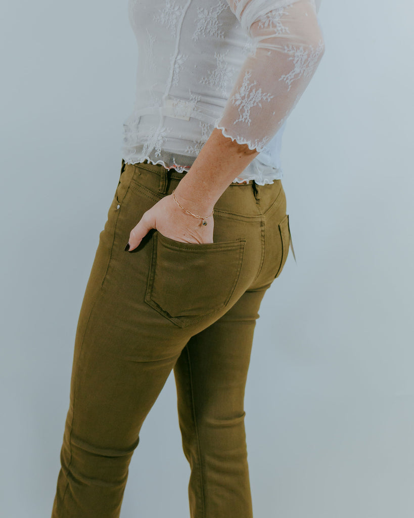 Step into style with the Florence Bottoms in a gorgeous olive hue. These high-rise pants offer a flattering fit that hugs your waist, while the cropped straight leg adds a fun, modern twist to any outfit. Perfect for mixing and matching, they bring a playful edge to your wardrobe with effortless comfort.