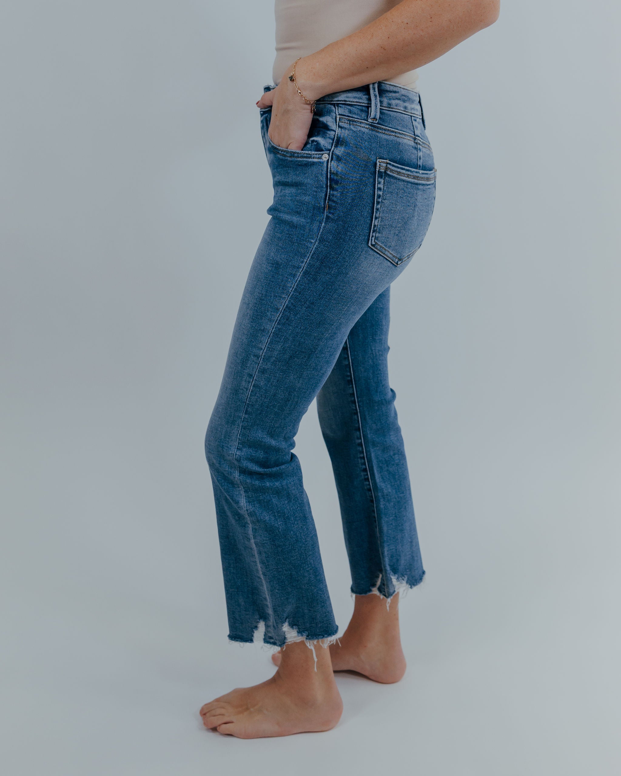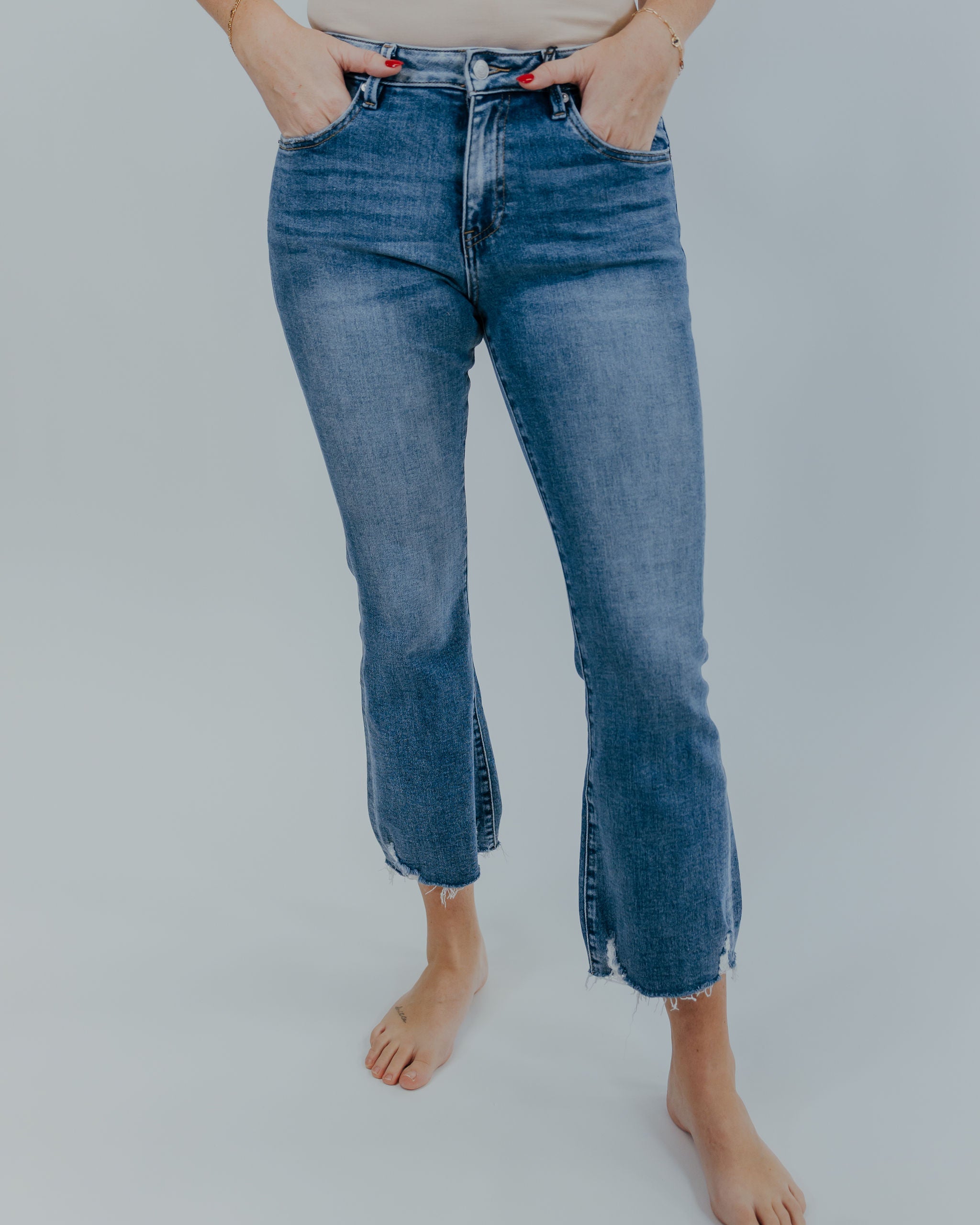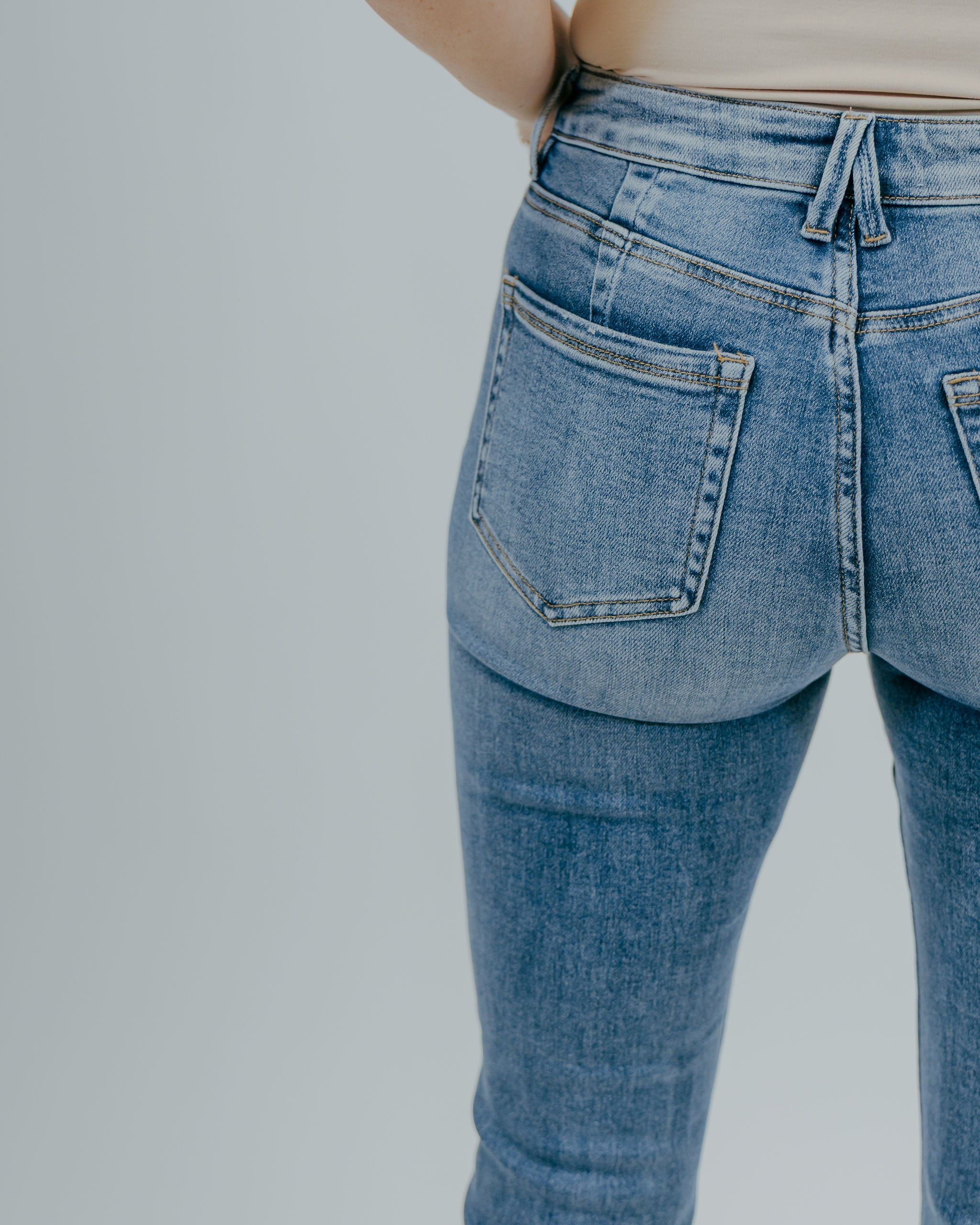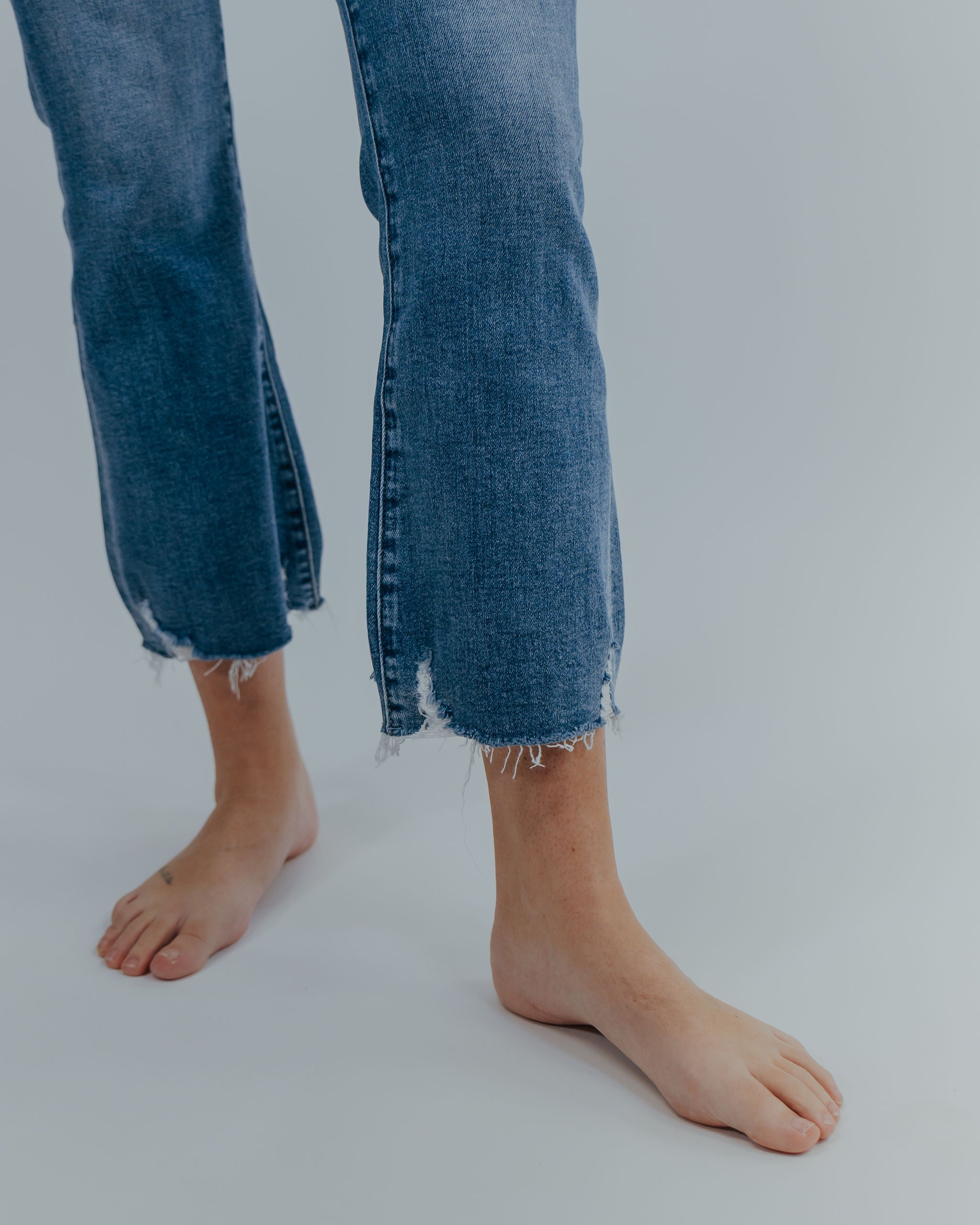 Step up your denim game with the Carson Ankle Flare Denim! Featuring a raw hem for that effortlessly cool vibe, its medium wash pairs perfectly with anything. Classic denim meets all-day comfort thanks to its great stretch, making it your new go-to for both casual days and nights out.