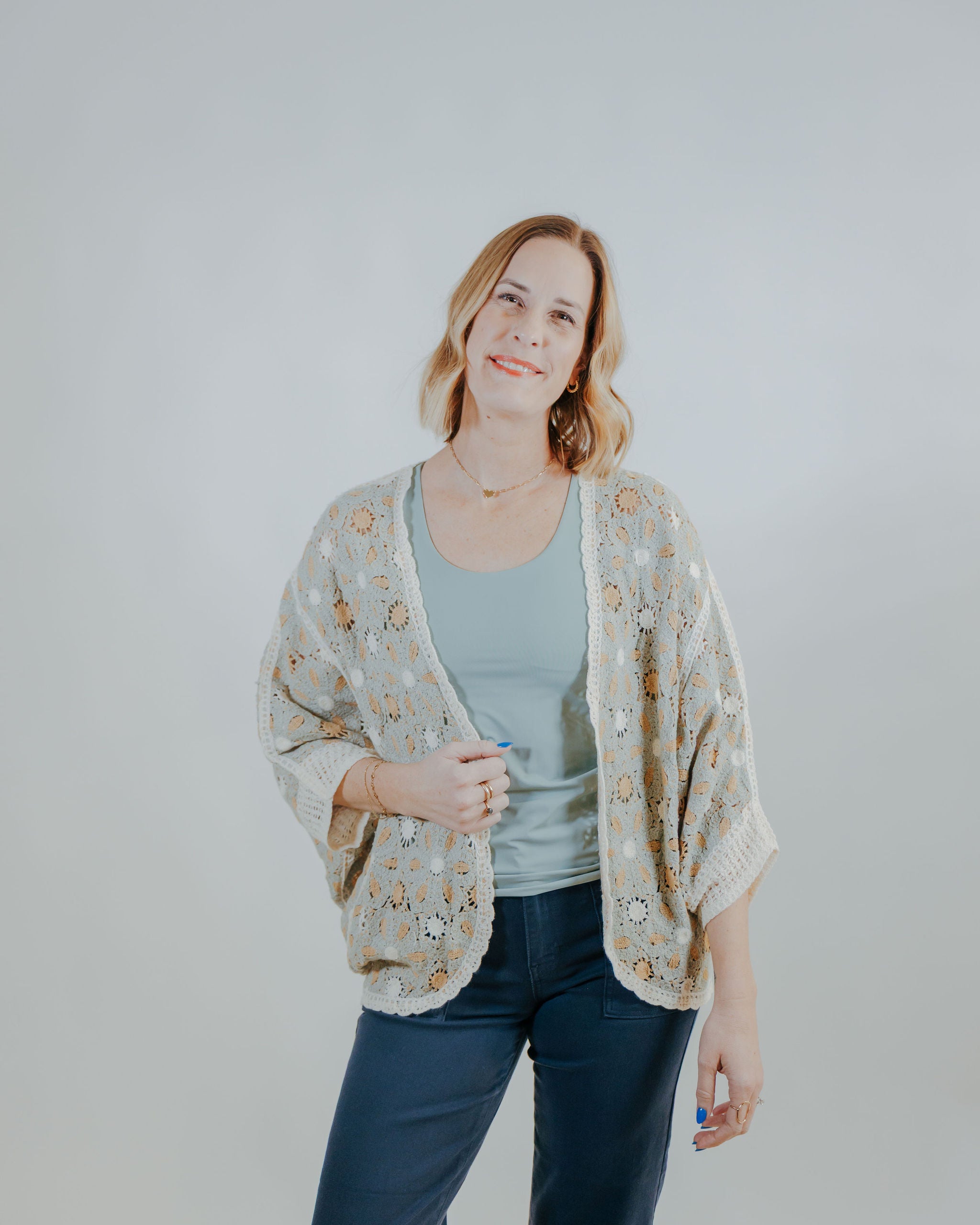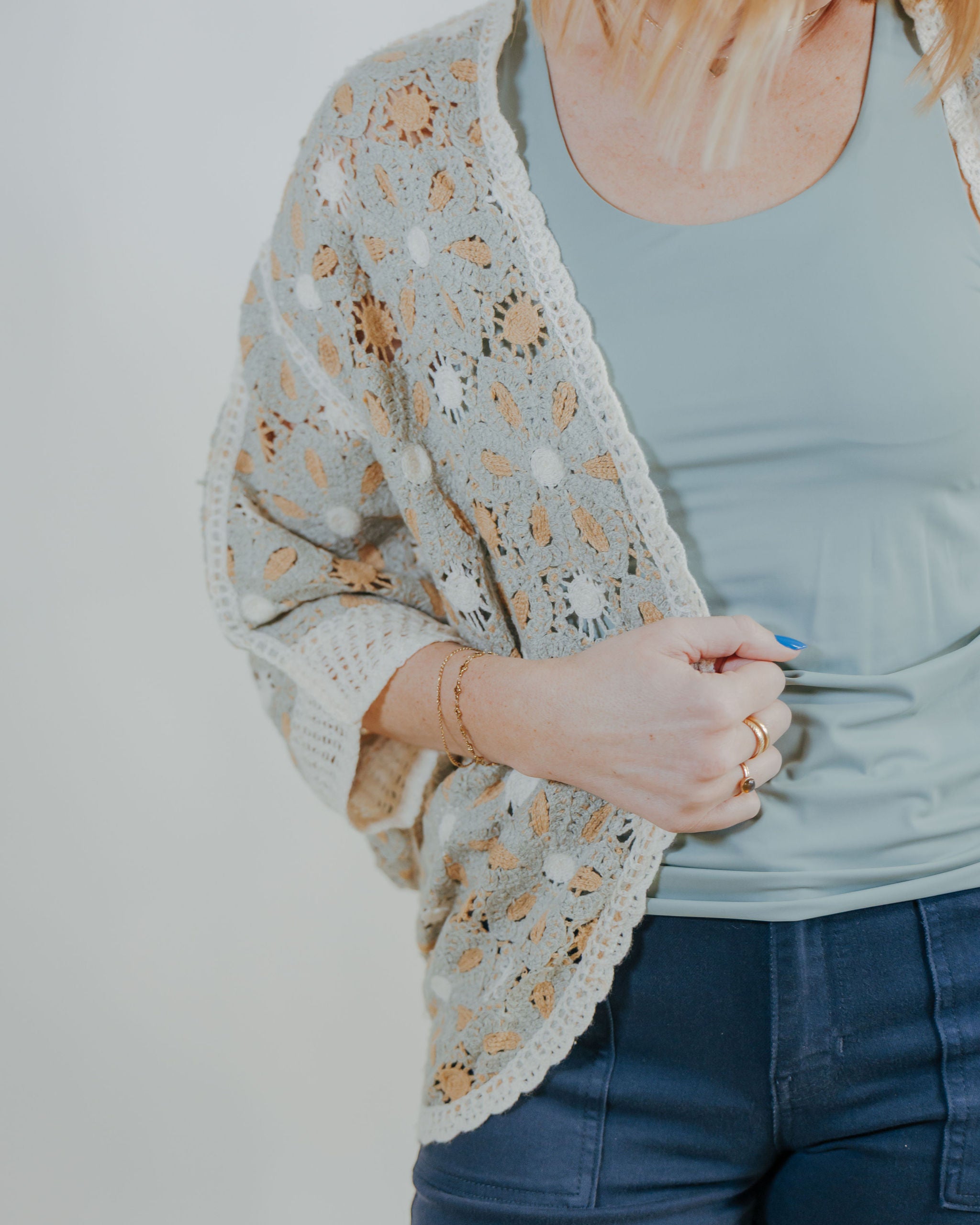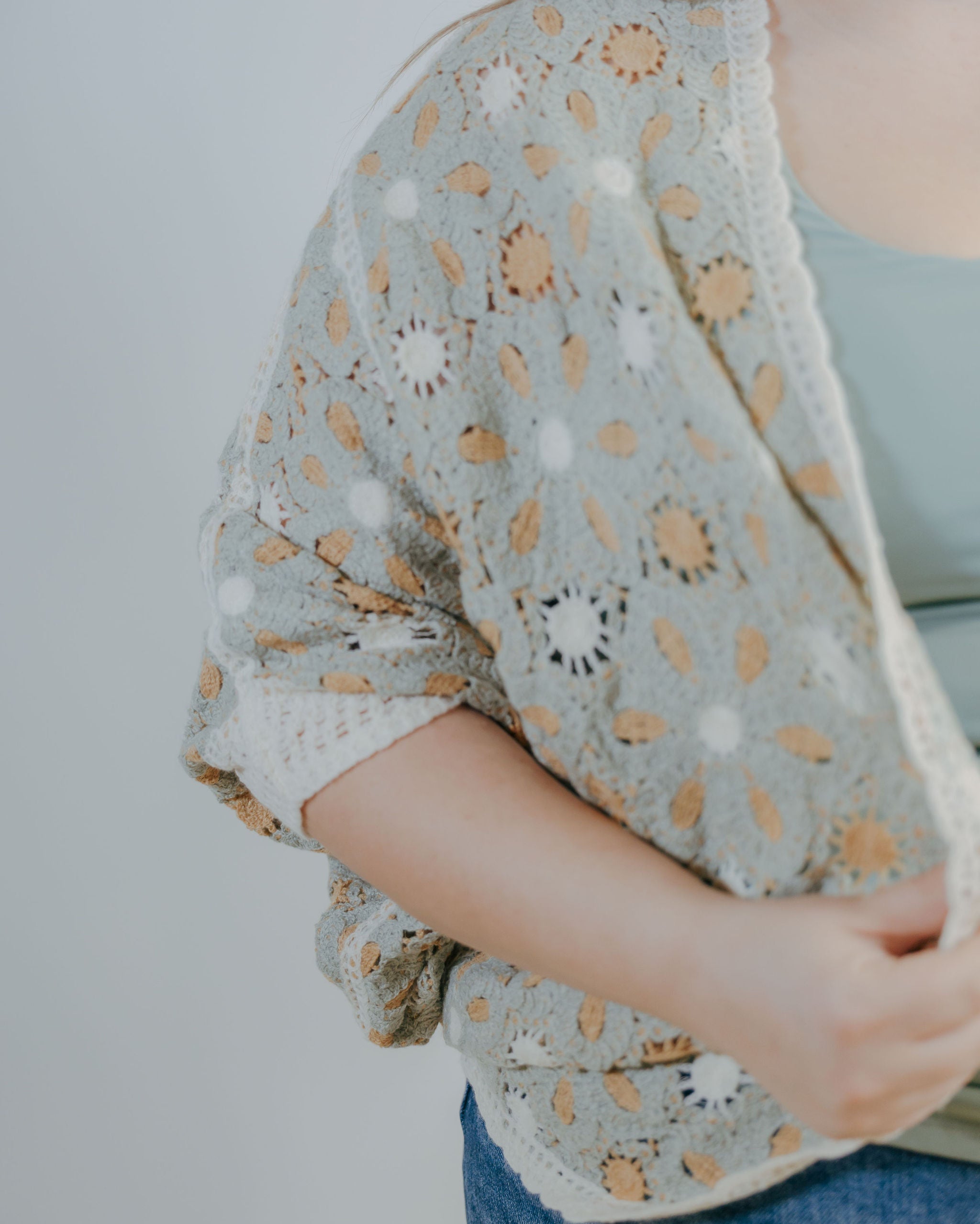 Layer it up with this charming knit cardigan, where delicate flower details add a whimsical touch to an everyday essential. Lightweight and perfectly versatile, it's ideal for transitional seasons or layering over your favorite tees. Cozy without the bulk—this is the cardigan you'll reach for again and again.