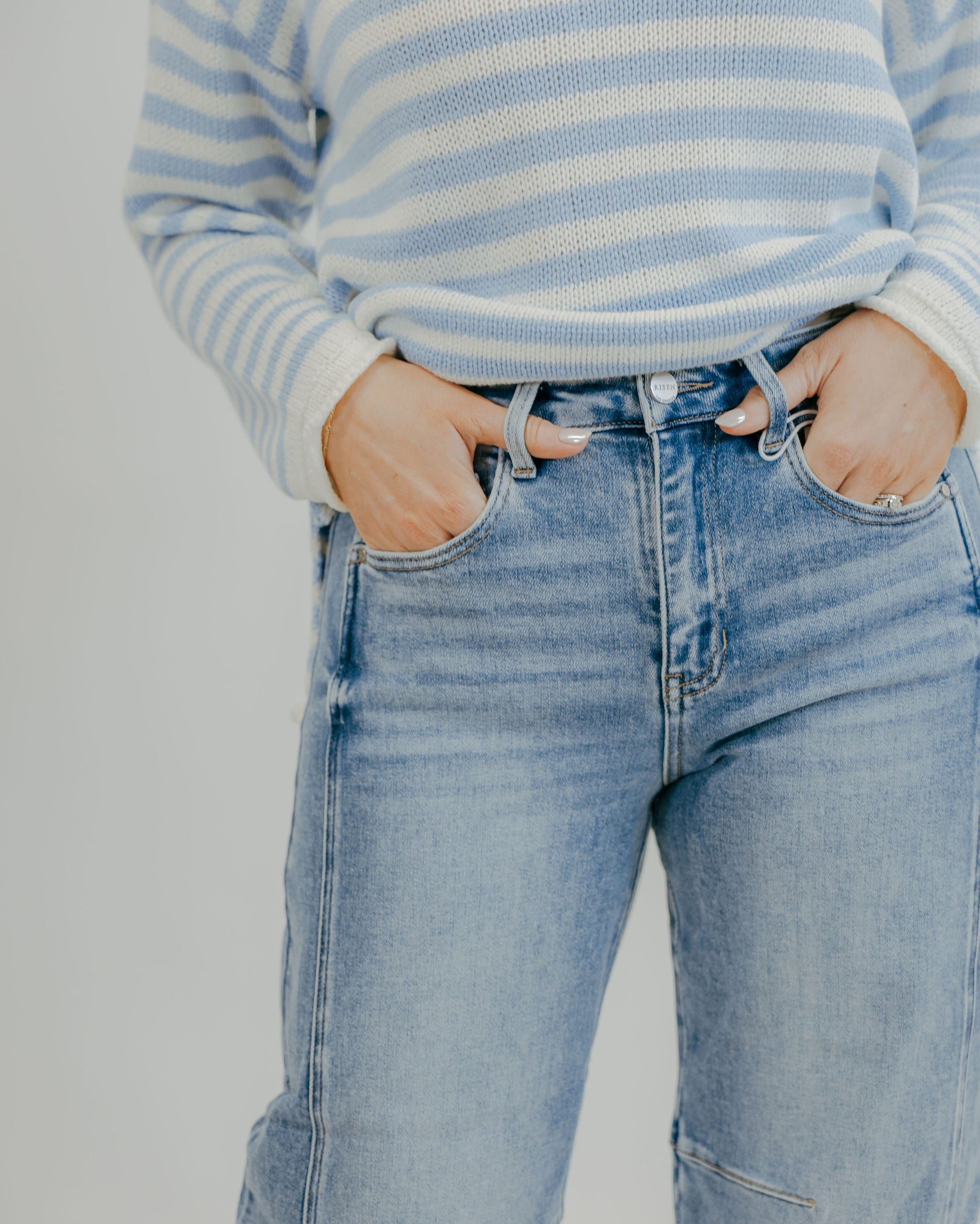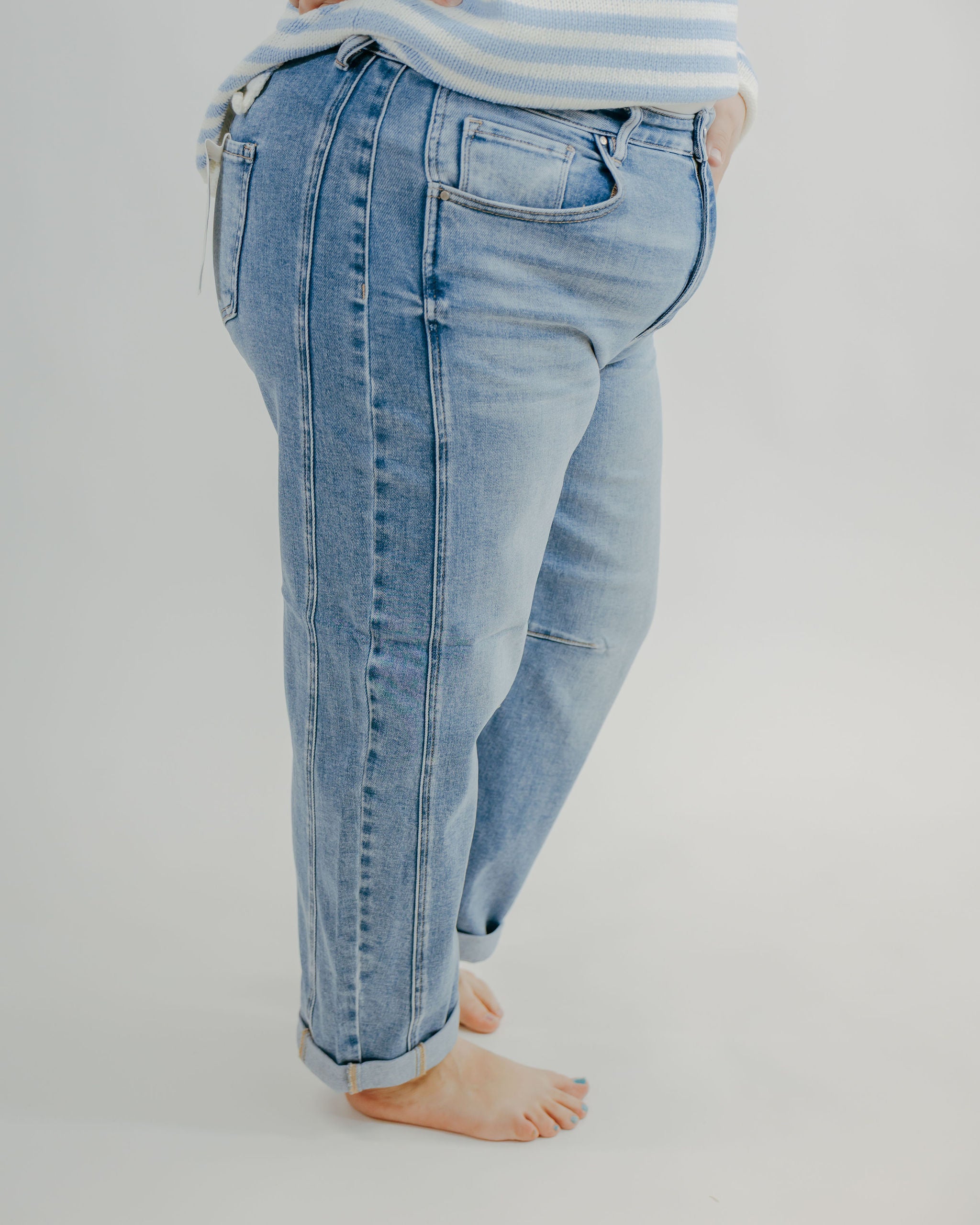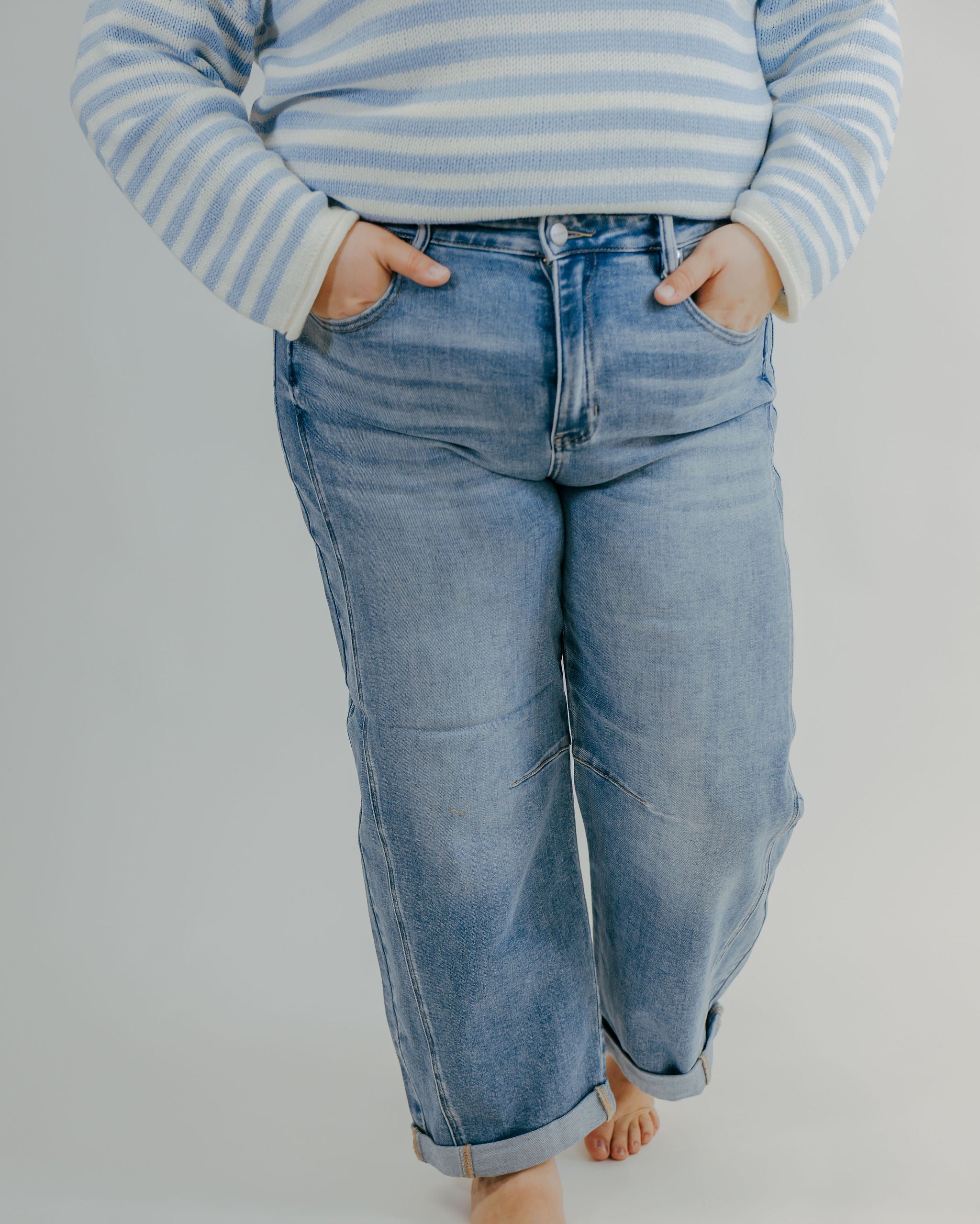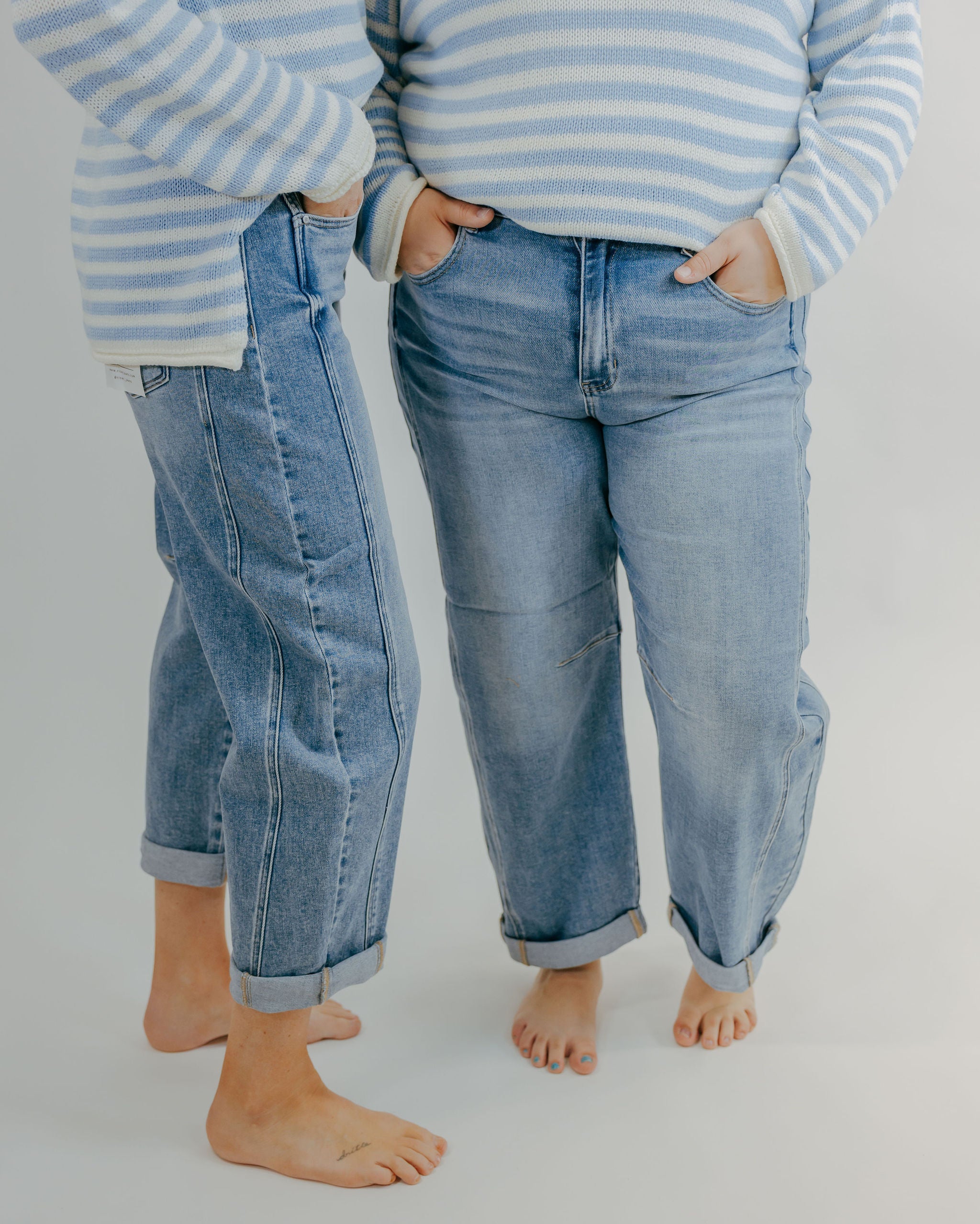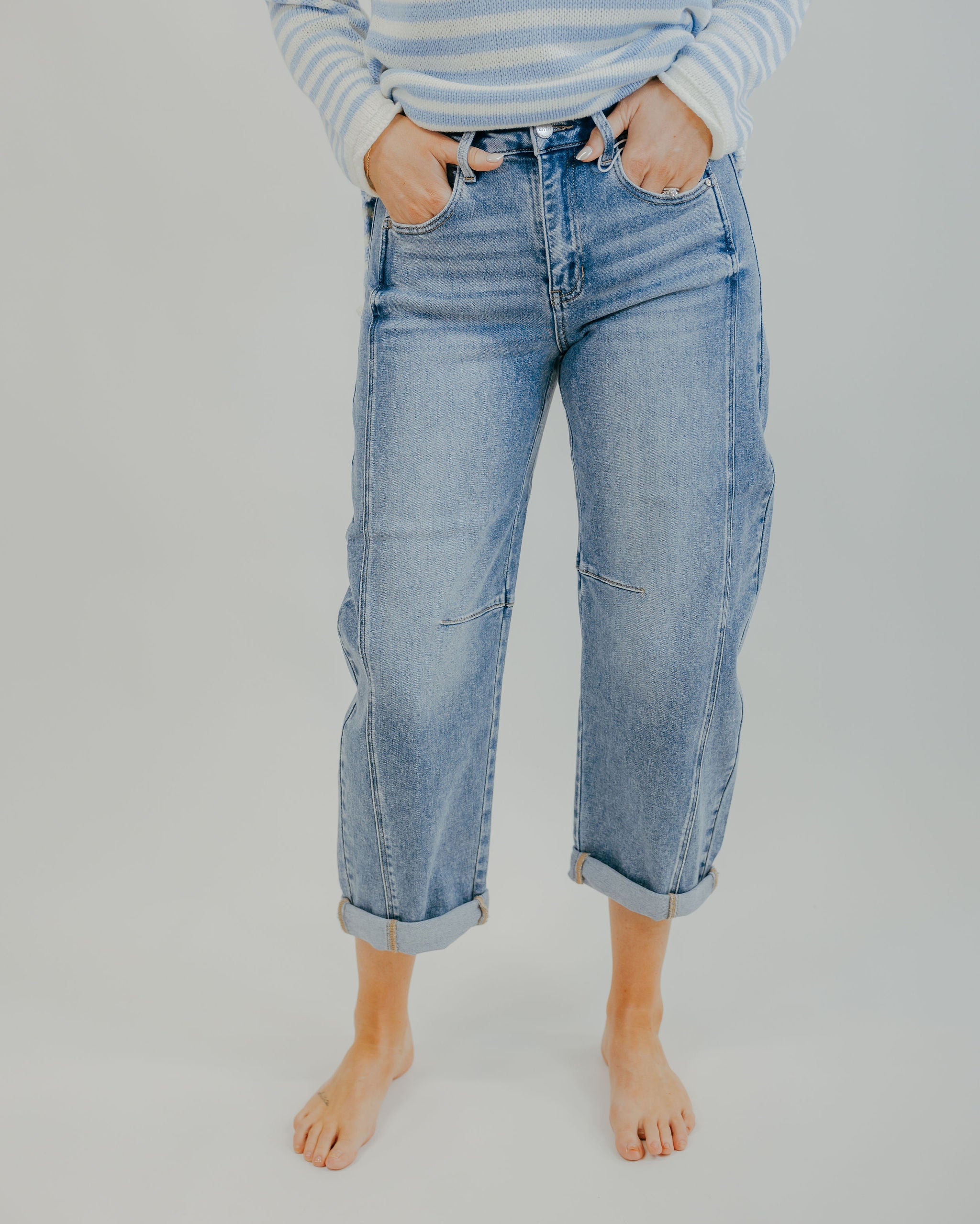 Step into fun and comfort with the Briar Cuffed Barrel Jeans! Featuring a trendy barrel style and a laid-back medium wash, these jeans bring a playful twist to your everyday look. The cuffed bottoms add a cool, casual vibe while ensuring a comfy fit that moves with you all day long. Perfect for those who love style without sacrificing ease.