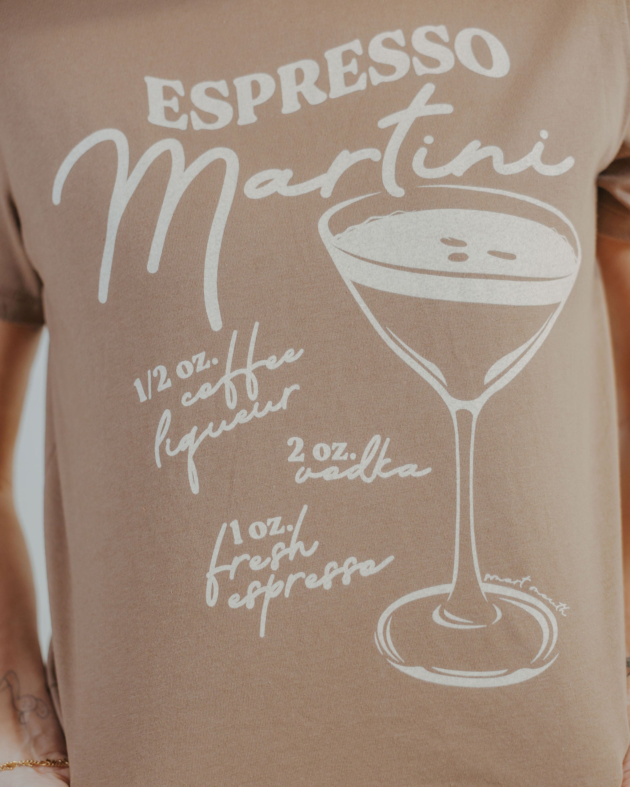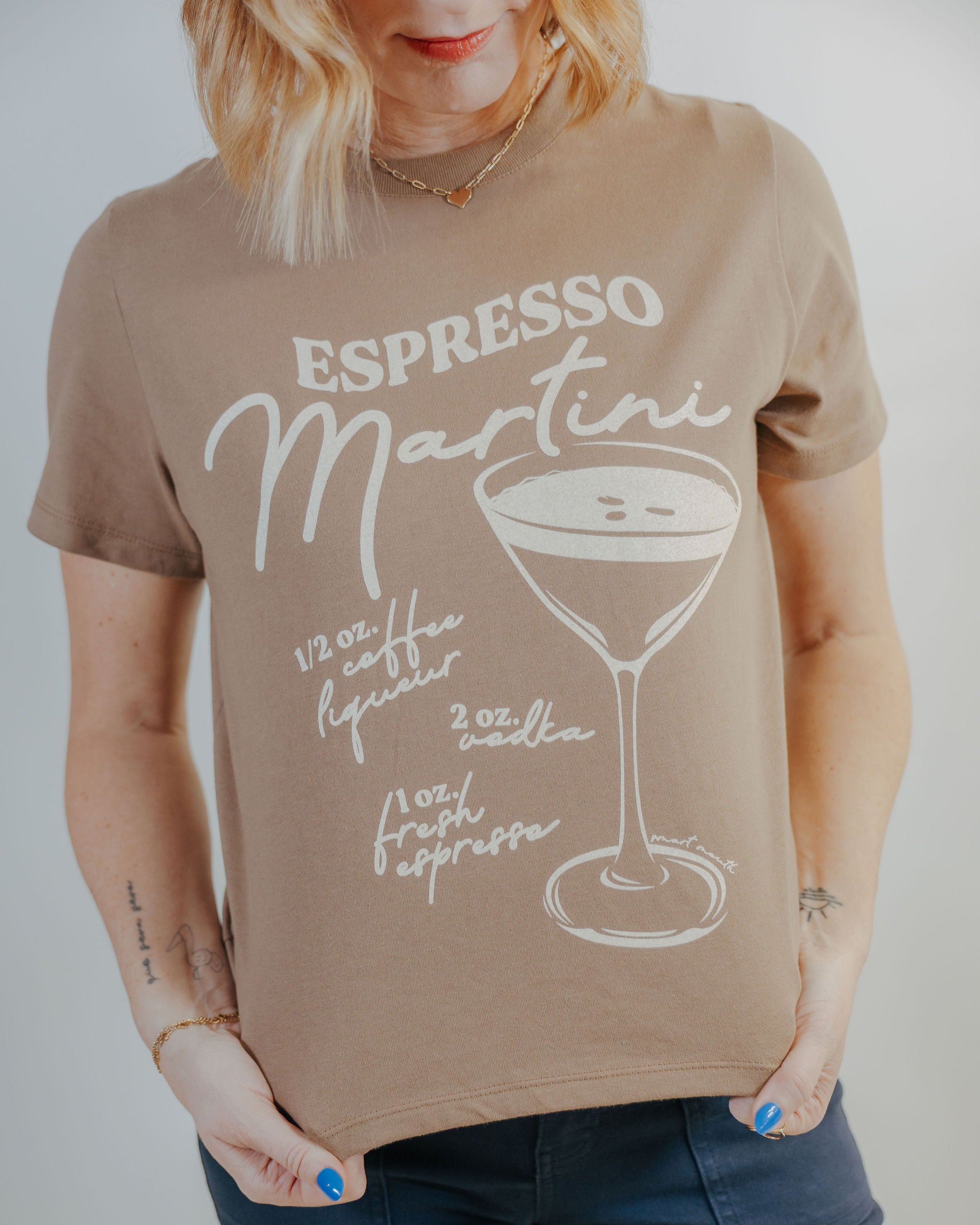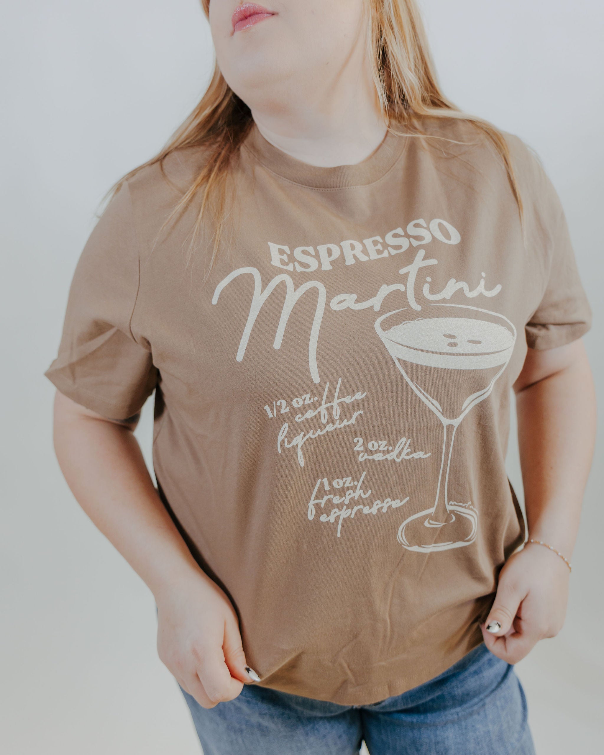 Sip style with this fun graphic tee celebrating everyone's favorite pick-me-up. The playful espresso martini design is perfect for coffee lovers, cocktail enthusiasts, and anyone who appreciates a little humor in their wardrobe. Soft and comfortable for everyday wear, this tee pairs perfectly with jeans, shorts, or your favorite bottoms for an effortless, witty look. Whether you're grabbing your morning coffee or heading out for happy hour, wear your love of the classics with a smile.