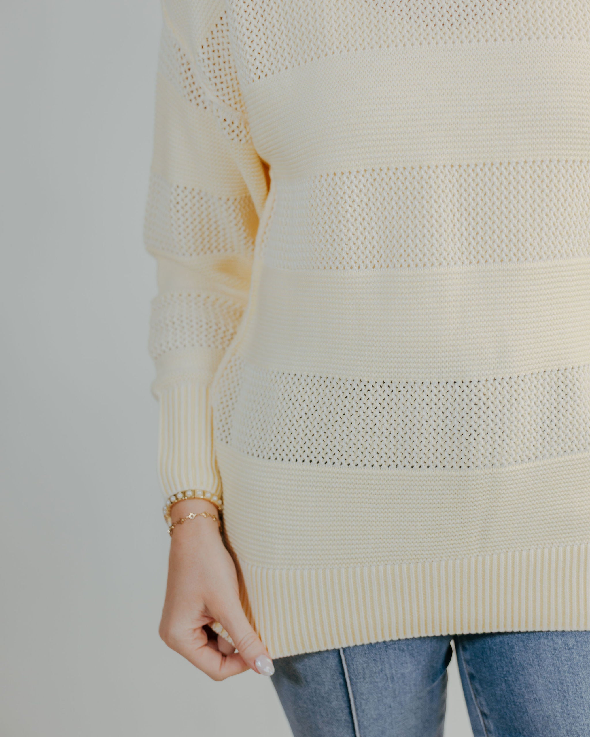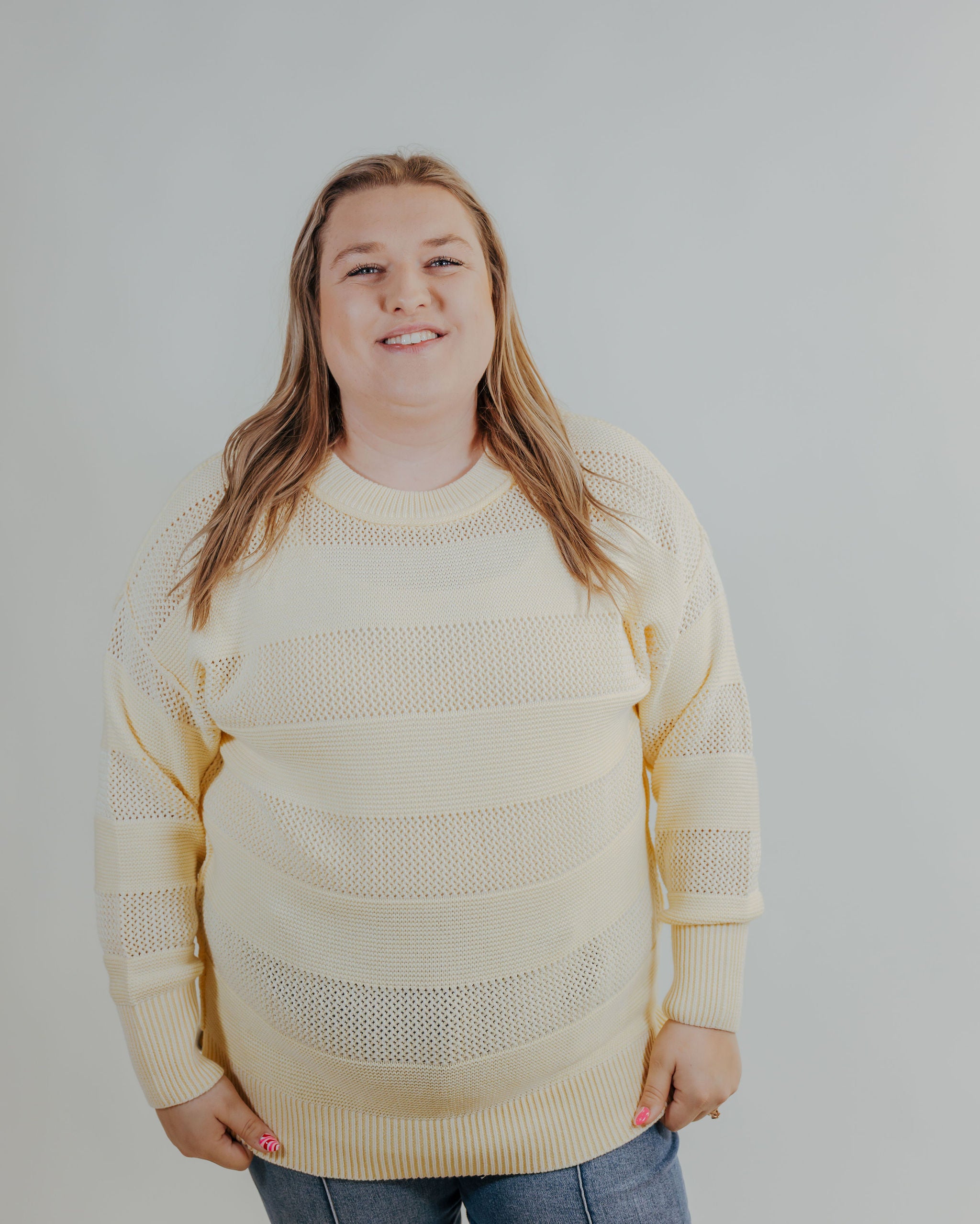 The Showstopper Top is your new go-to for effortless style. This lightweight long sleeve features delicate stripes and a cheerful lemon hue that brightens any outfit. Perfect for layering or wearing solo, it's cute enough to turn heads and comfortable enough for all-day wear. Pair it with your favorite jeans or dress it up for a polished look that feels anything but basic.