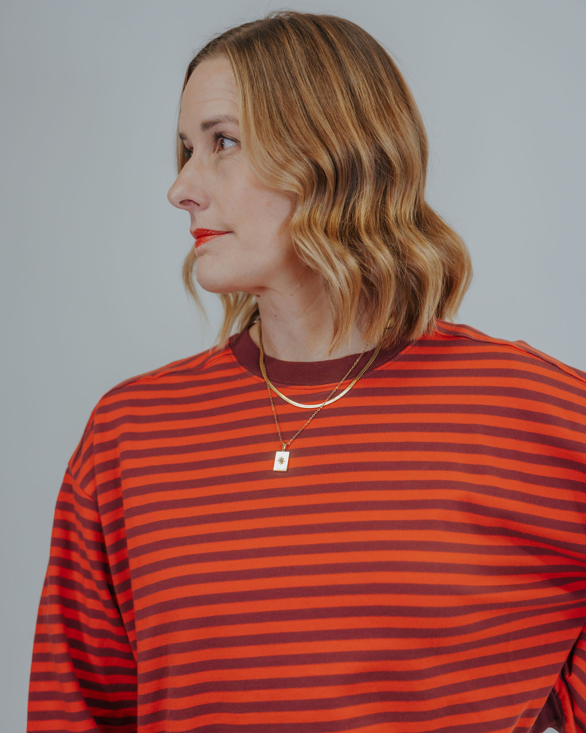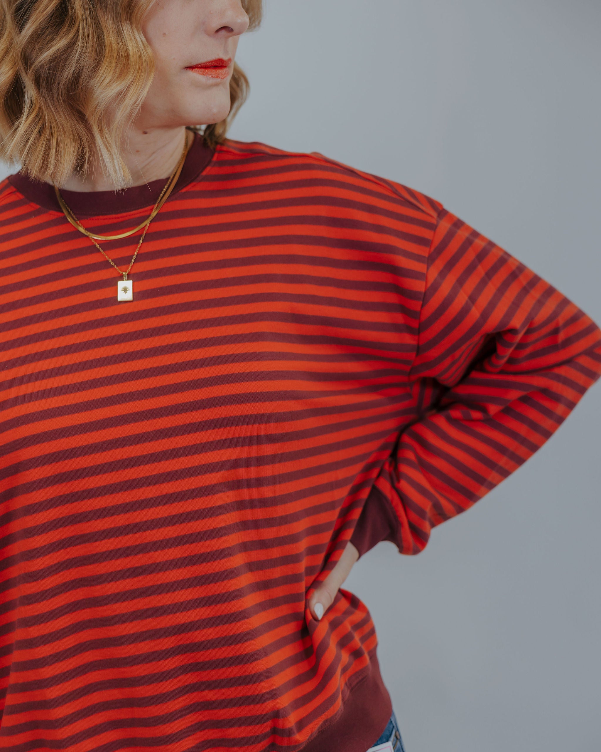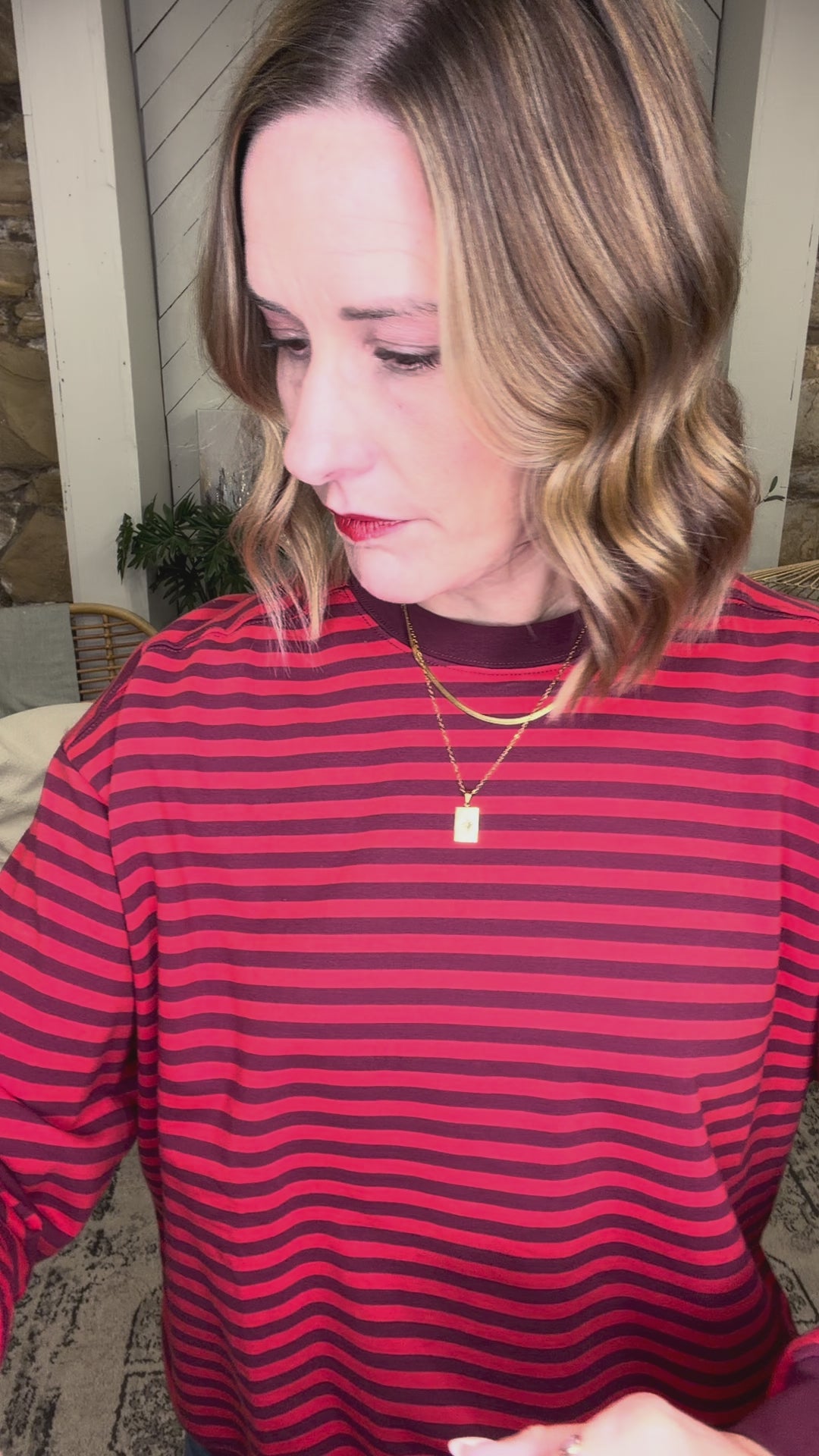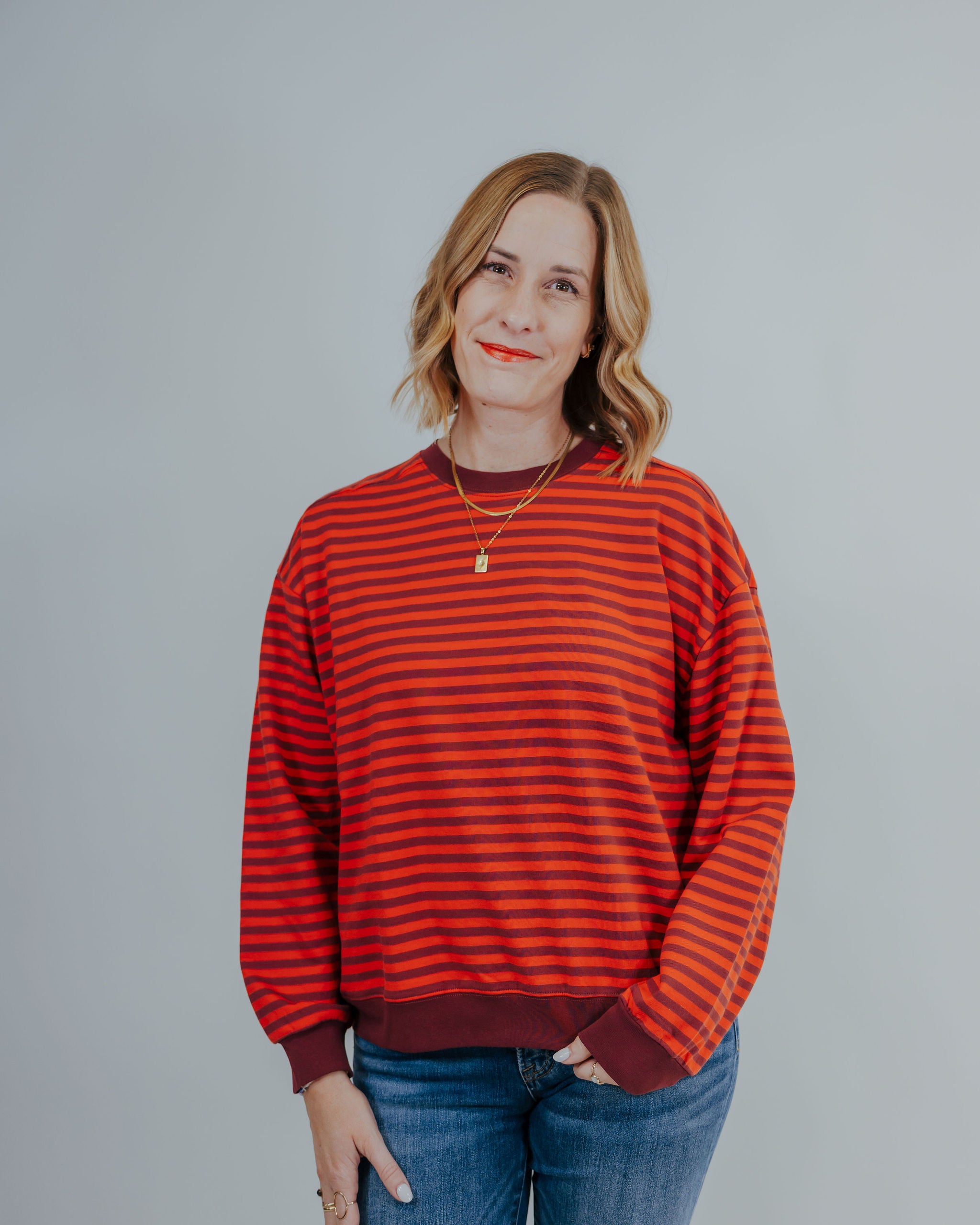 Throw on the False Alarms Pullover and embrace effortless style. This oversized striped pullover features bold burgundy and red stripes that make a statement without trying too hard. Soft and cozy, it's the kind of piece you'll reach for again and again—perfect for layering or wearing solo. Trendy, comfortable, and ready for anything your day throws at you.
