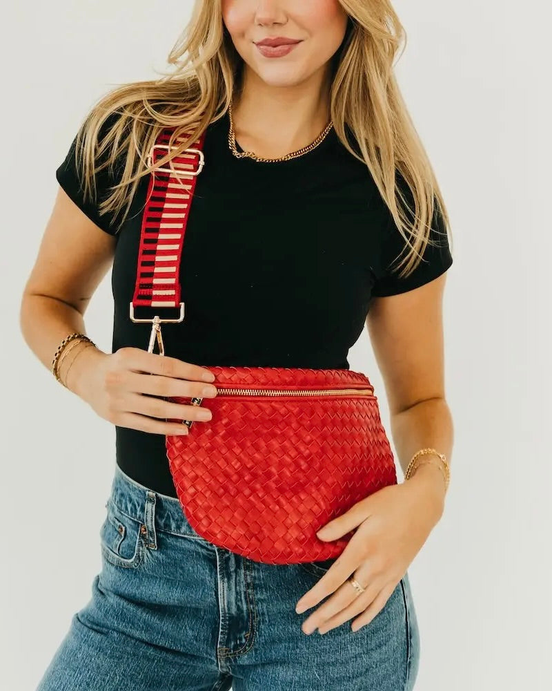 Meet the Woven Westlyn Bum Bag! This design is such a classy take on a crossbody. Including the fun block design the strap has, the bag also has a zipper closure with beige and black chevron interior, and a zippered stash pocket on the inside. This crossbody bag is the perfect way to elevate your Fall/Winter look!